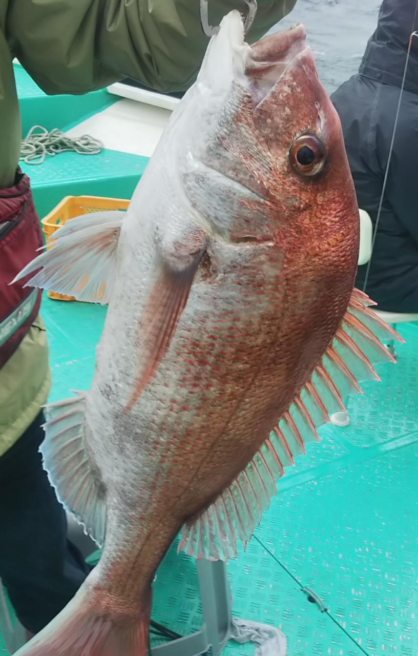 来ました!本日一発目は、マダイ57センチでした!よく来てくれましたー