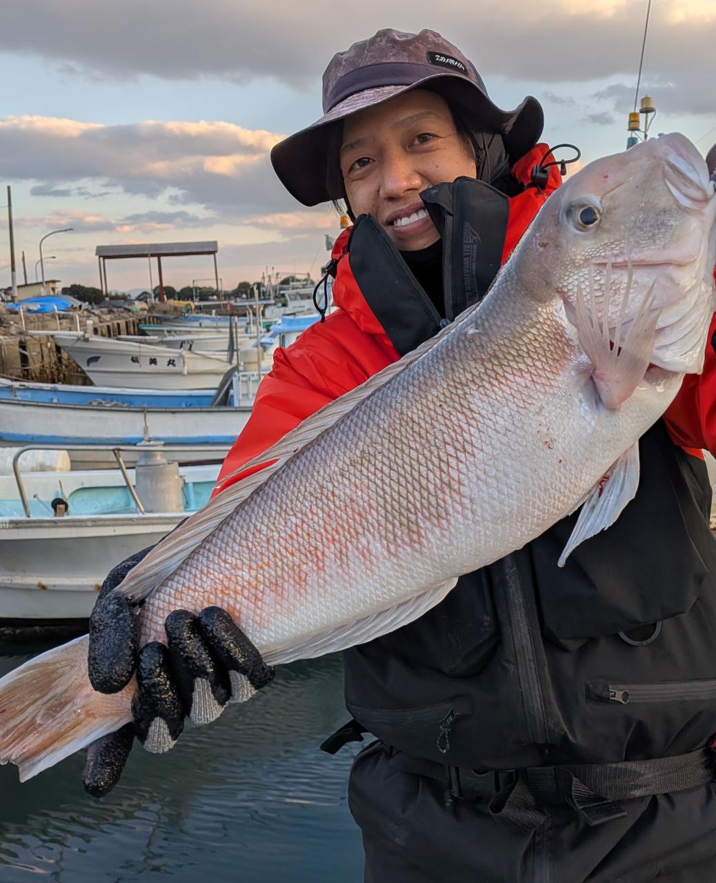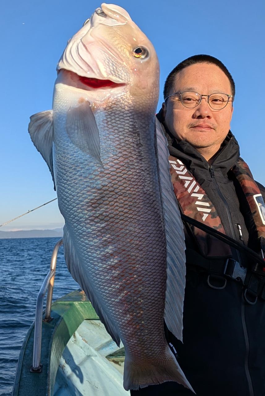 朝イチからシロアマ様ご降臨!ヂギングでは丸々のハマチ君そしてタイラバにデカマハタ、マダイさんもヒット!