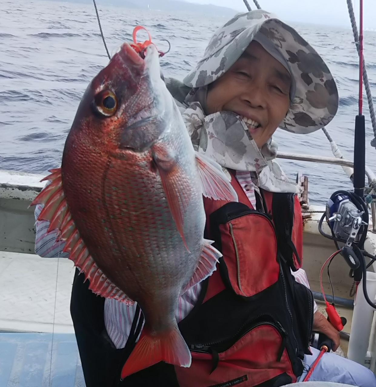 思っより風強く、釣り辛い状況でしたがお母さんがまずマダイをキャッチ!
