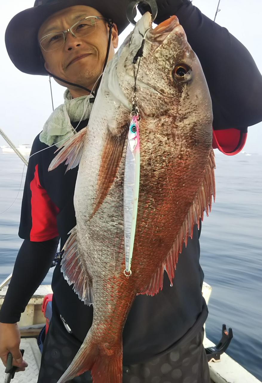 朝の上げ潮の終わりがけでジギングにマダイがヒット~!
