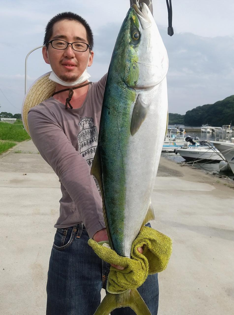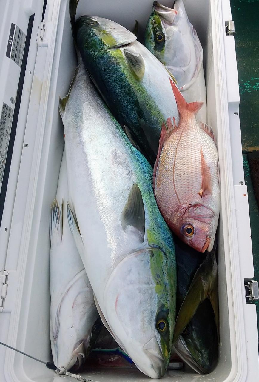 潮が動いて来てからジギングで、ブリ87センチを筆頭に次々ヒット〜!