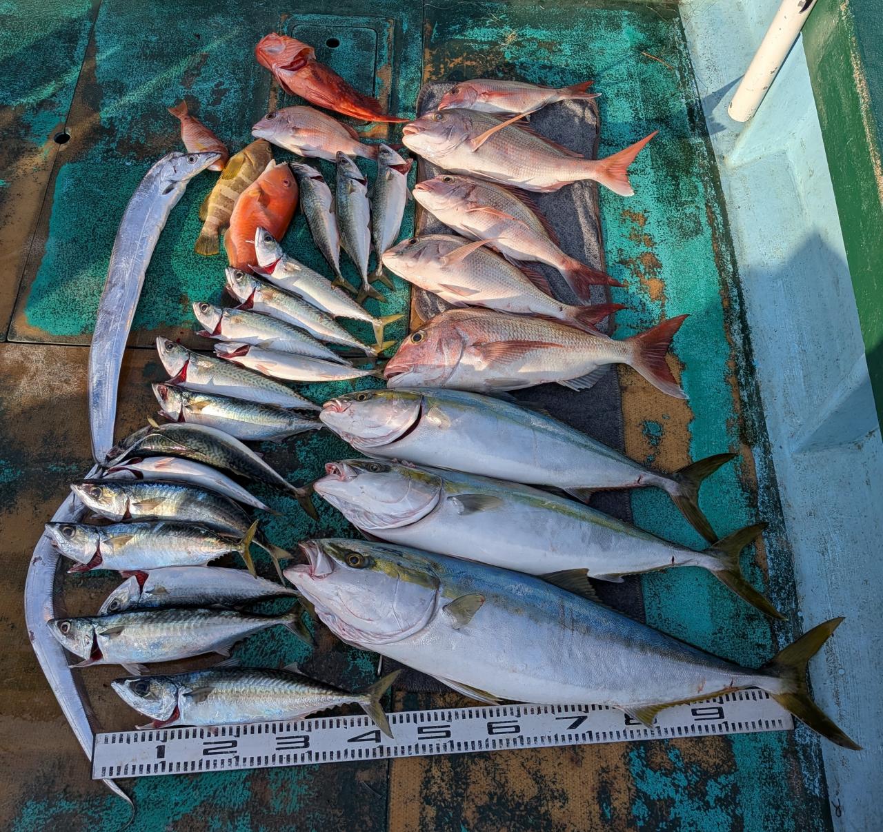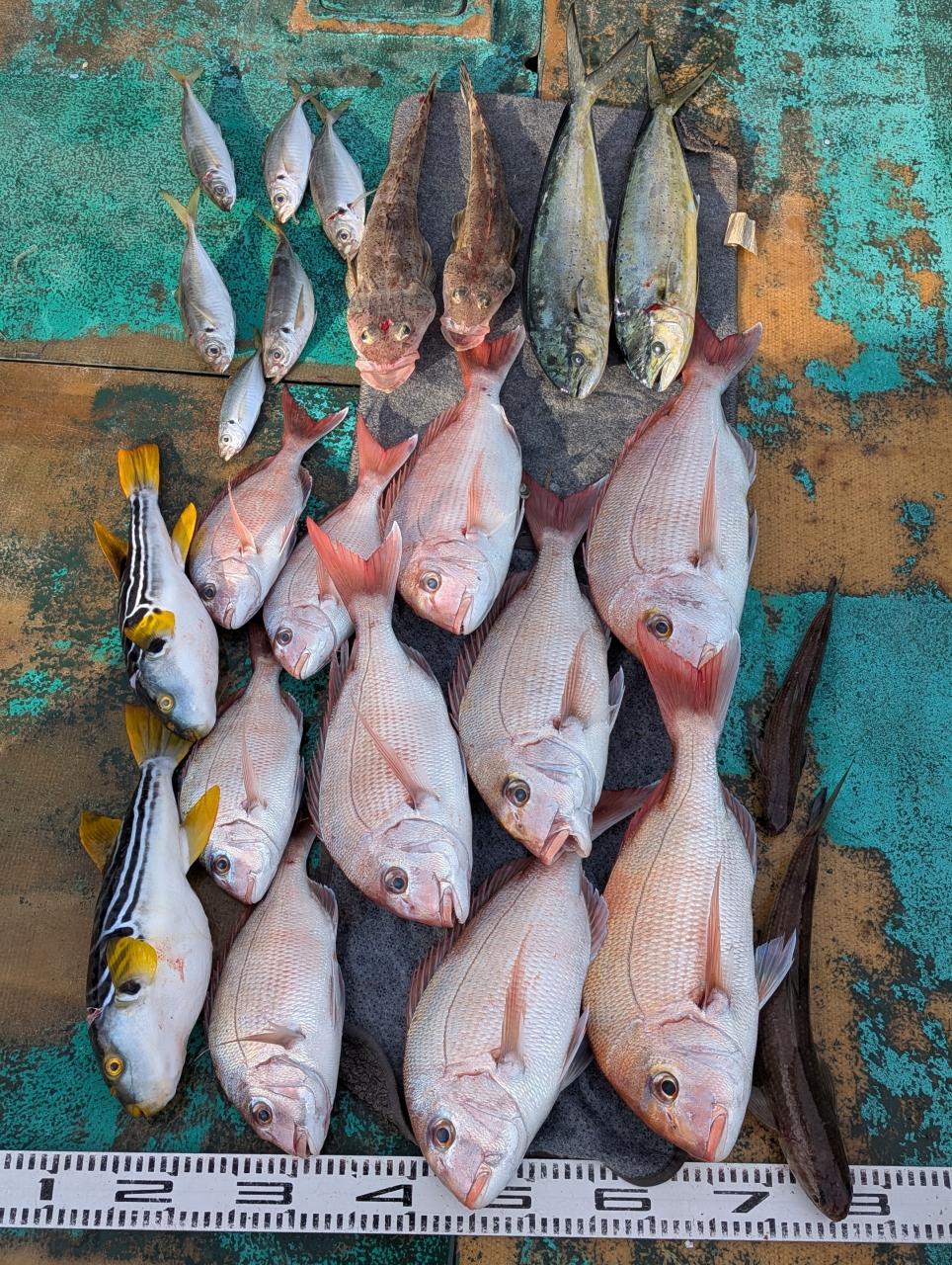 そんな状況でしたが、90㌢を筆頭にブリハマチ、60㌢を筆頭にマダイさん、そしてサバちゃん、タチウオ、アオハタ、ダイゴロウ等でお土産は確保!で終える事が出来たのでありました〜