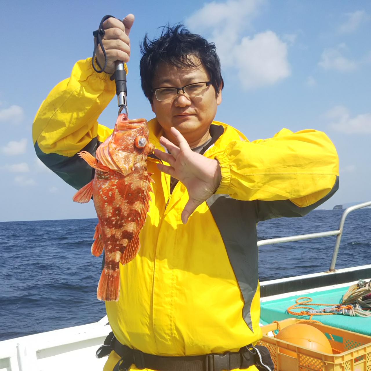強い引き込みで一撃!竿先叩くし、重いし、マダイ?それにしては...と上がってきたのは、ナンと、大五郎!