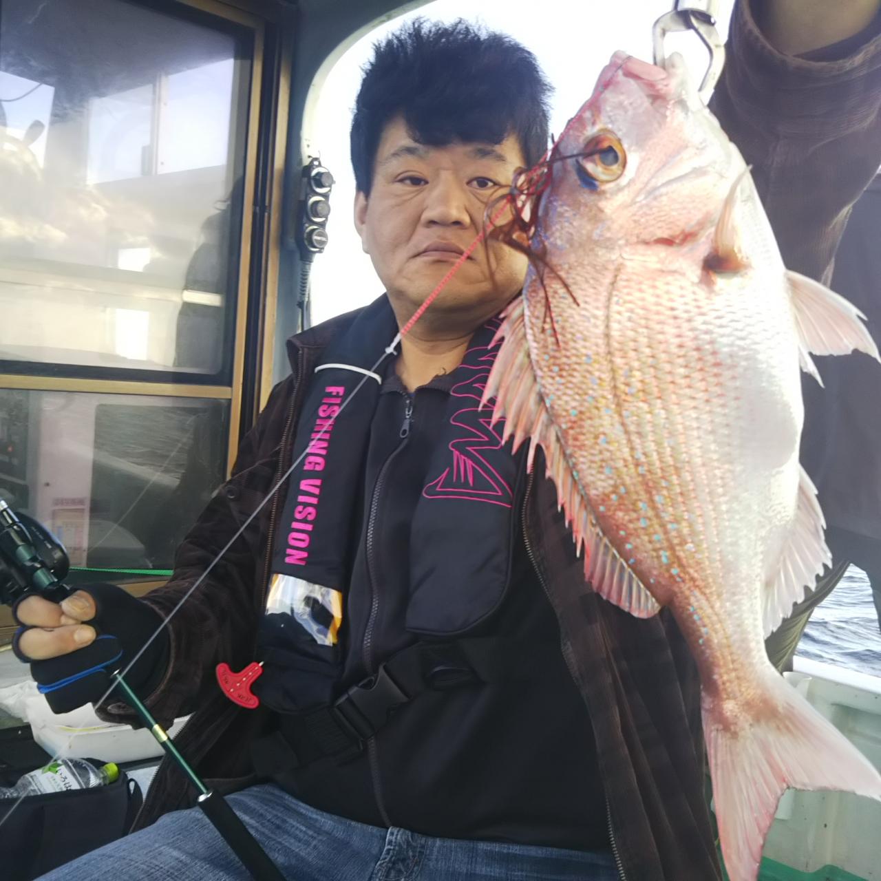 本日一匹目のマダイ。これからマダイラッシュが続きます。