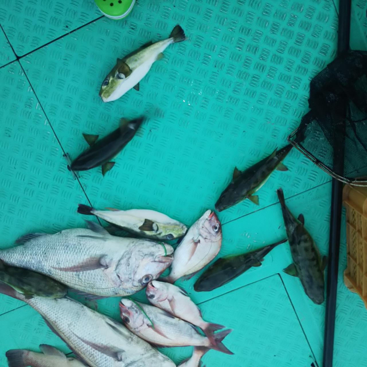 食ってきたと思うとこいつが邪魔ばかりして。こんなにフグが食ってくることは初めてでした。ここに入らないのも多数。これが食わなきゃもっと釣果伸びてると思います。