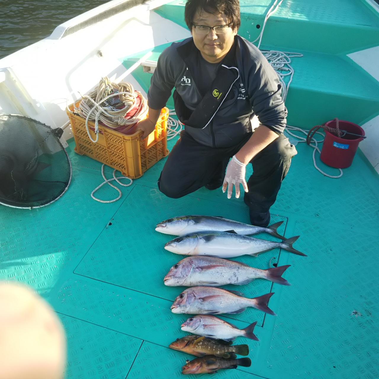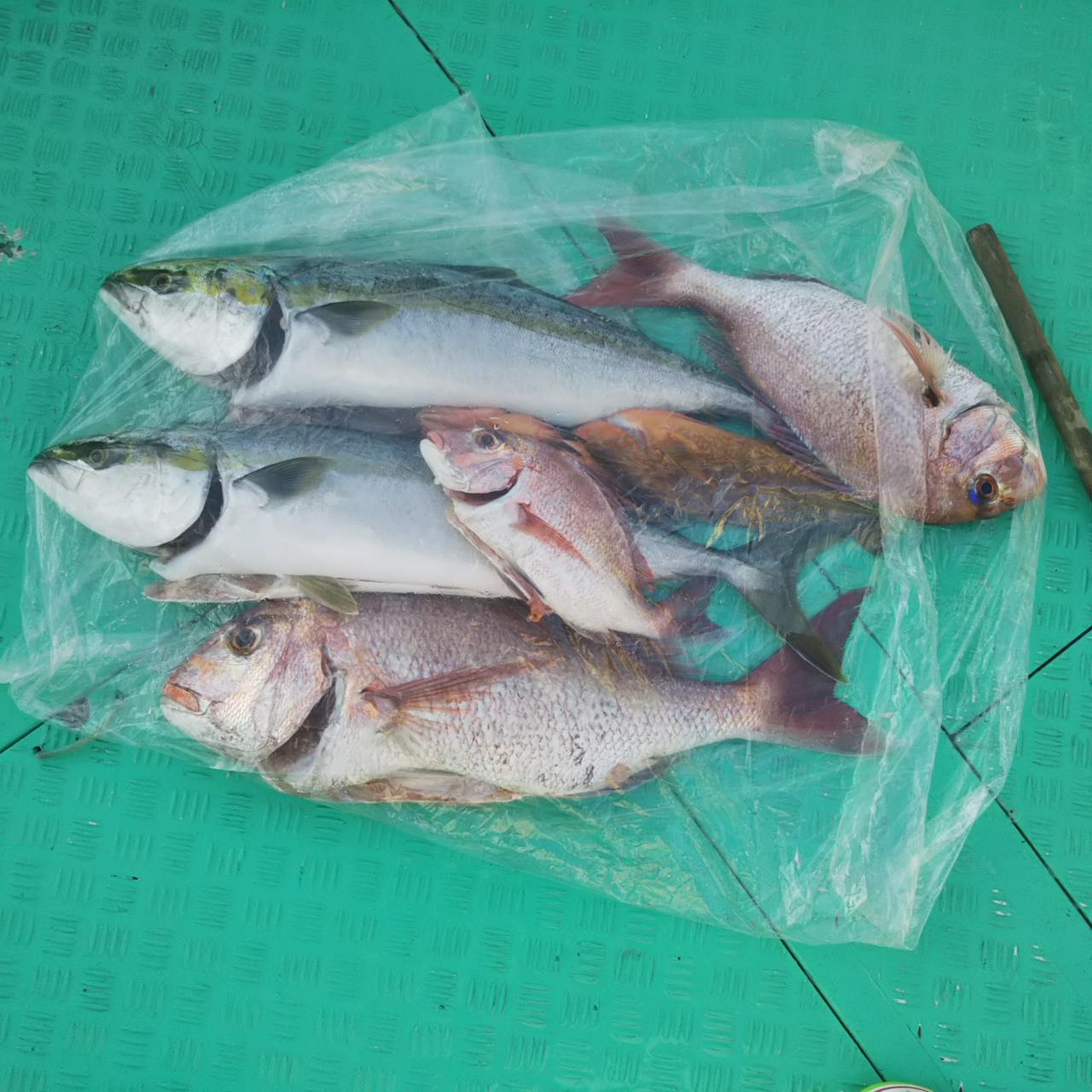 3.5キロの青物2本、マダイ47センチ、マダイ64センチ3キロ、アコウ30センチ2匹、マダイ焼きサイズ、でした。