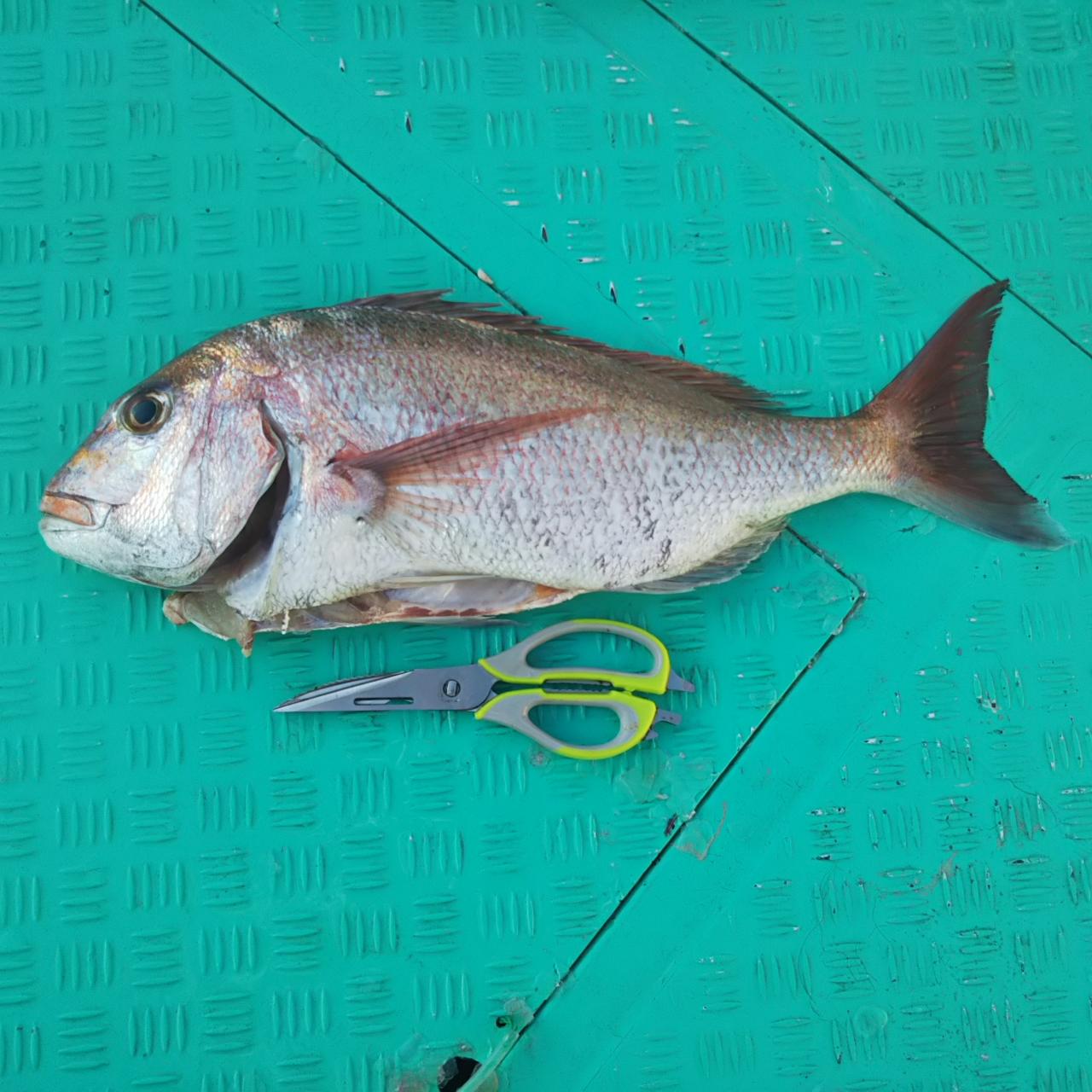 ちょっと小ぶりなマダイ、これがこんなデカいジグに食いつくんですね~