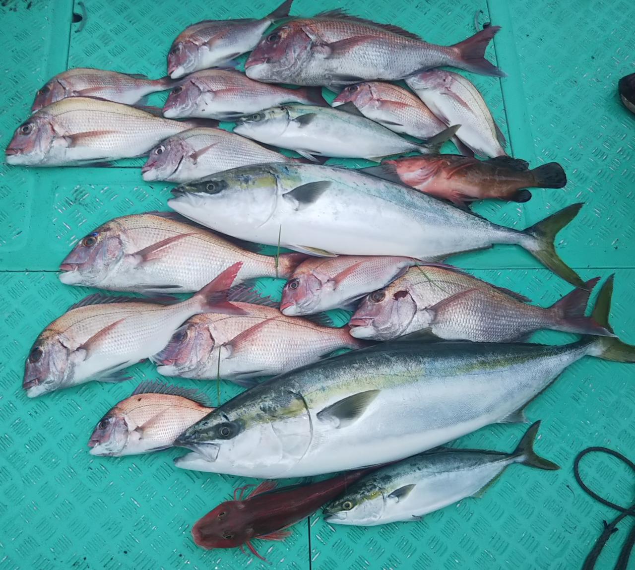 92センチ8キロ、84センチ5.5キロのブリが2匹、ヤズ、マダイ60センチ、50センチその他、