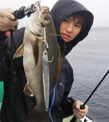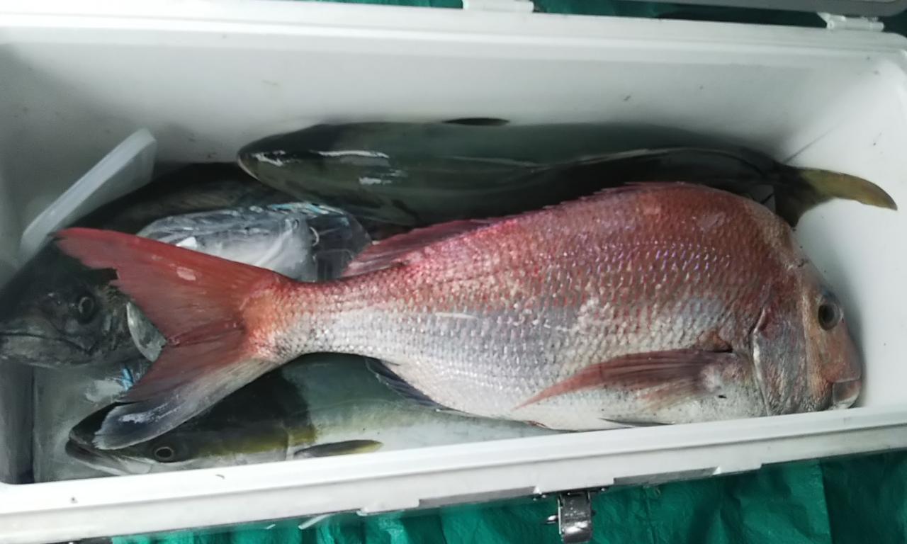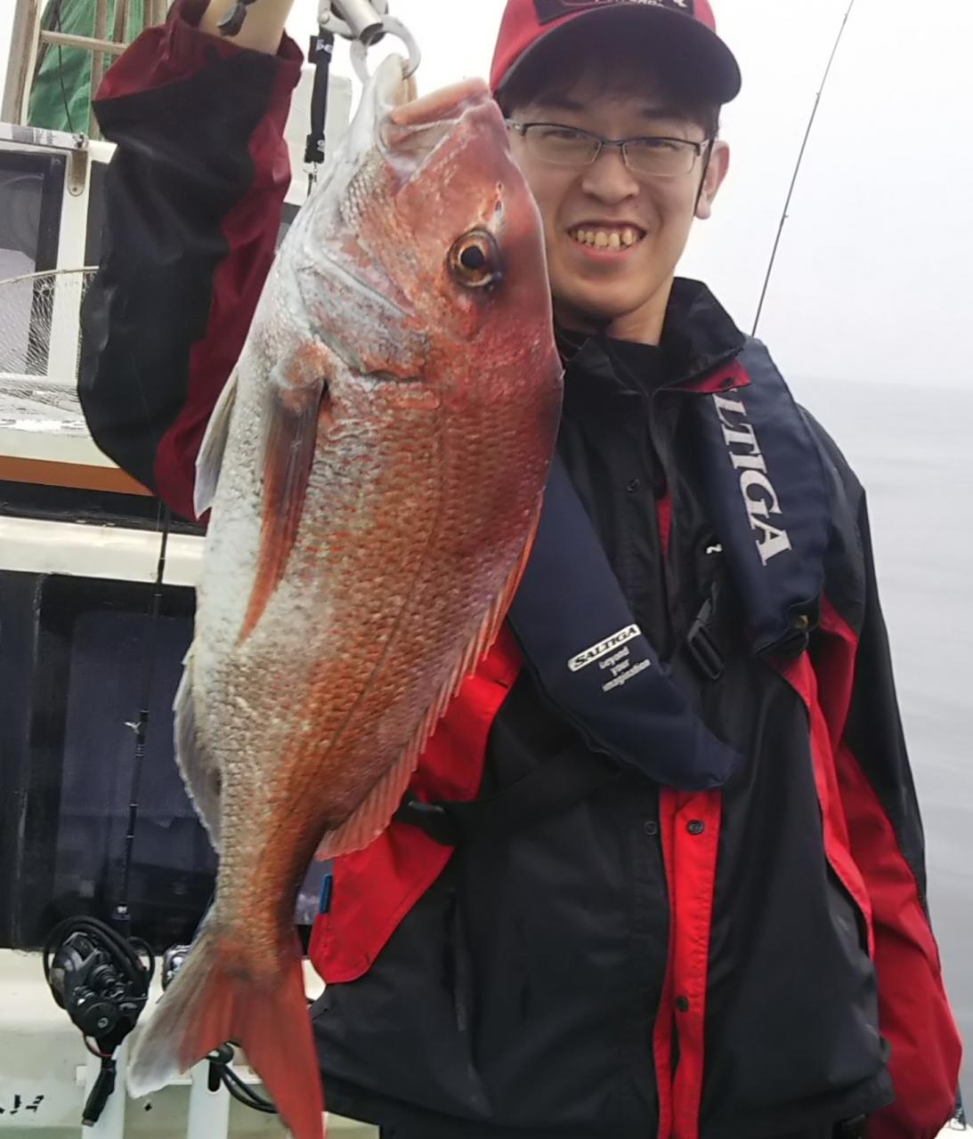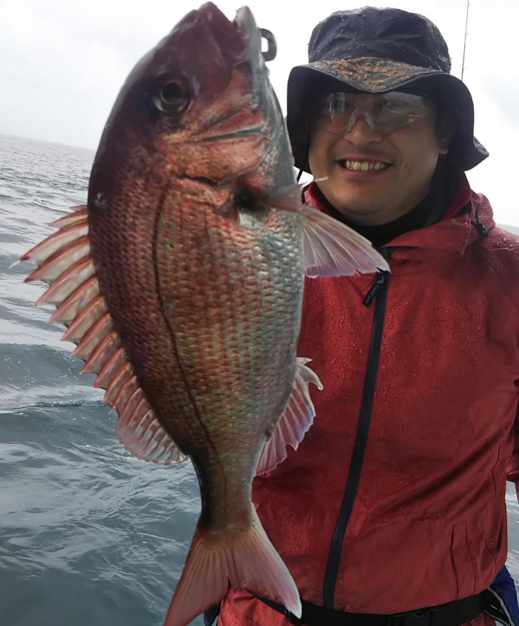 朝イチでジグに上がったのはナンと68センチのマダイでしたー!