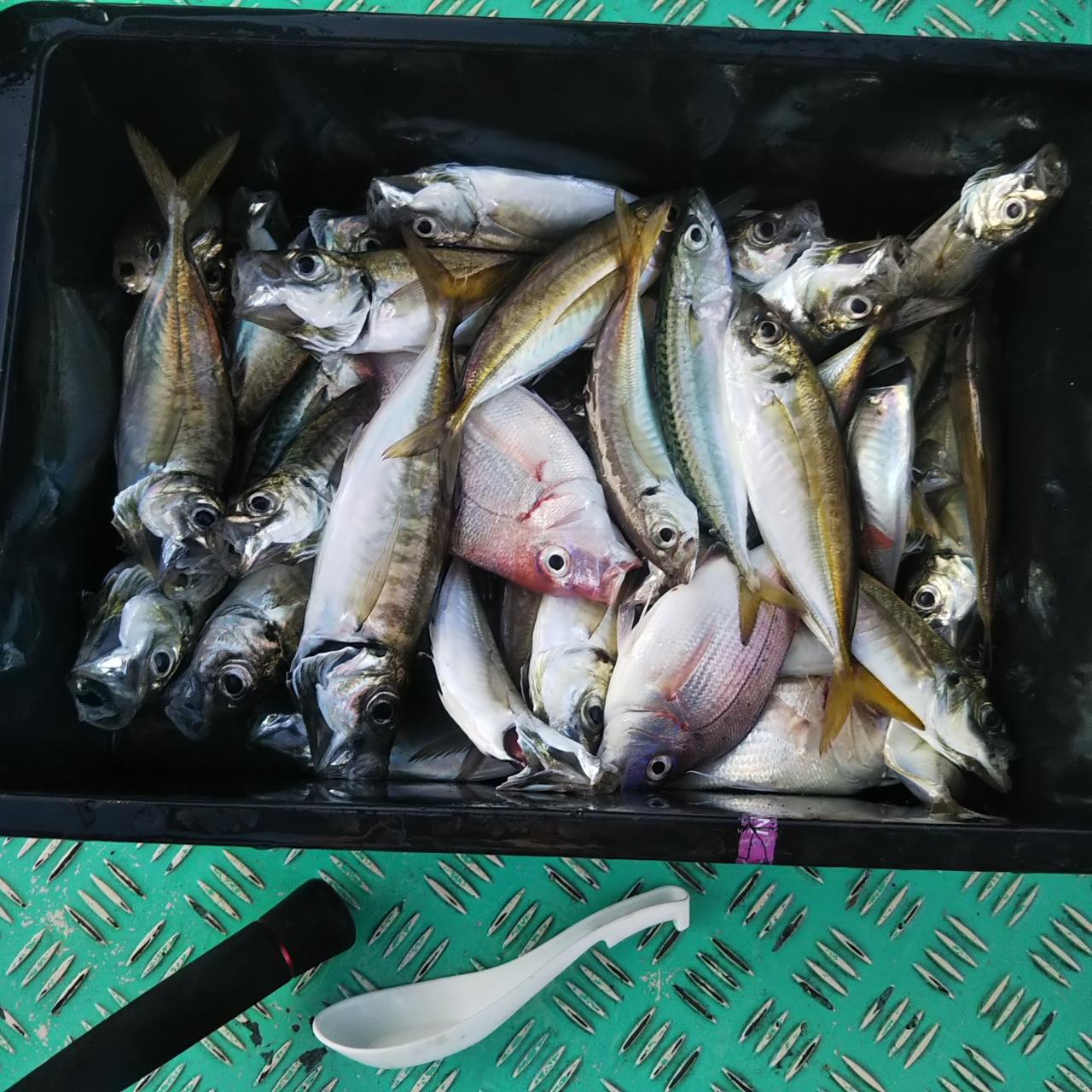 連日の雨。海上は水潮で濁り、流木も沢山流れる状態。魚の食いも良くない今日の状況ですが、