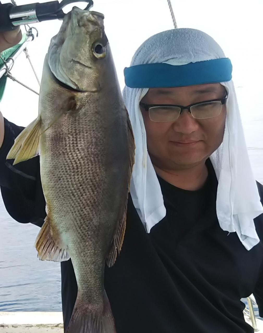 潮が緩んで来て、イサキが食わないかなーと言ってたら、狙い通りに40センチのジャンボイサキを連発!