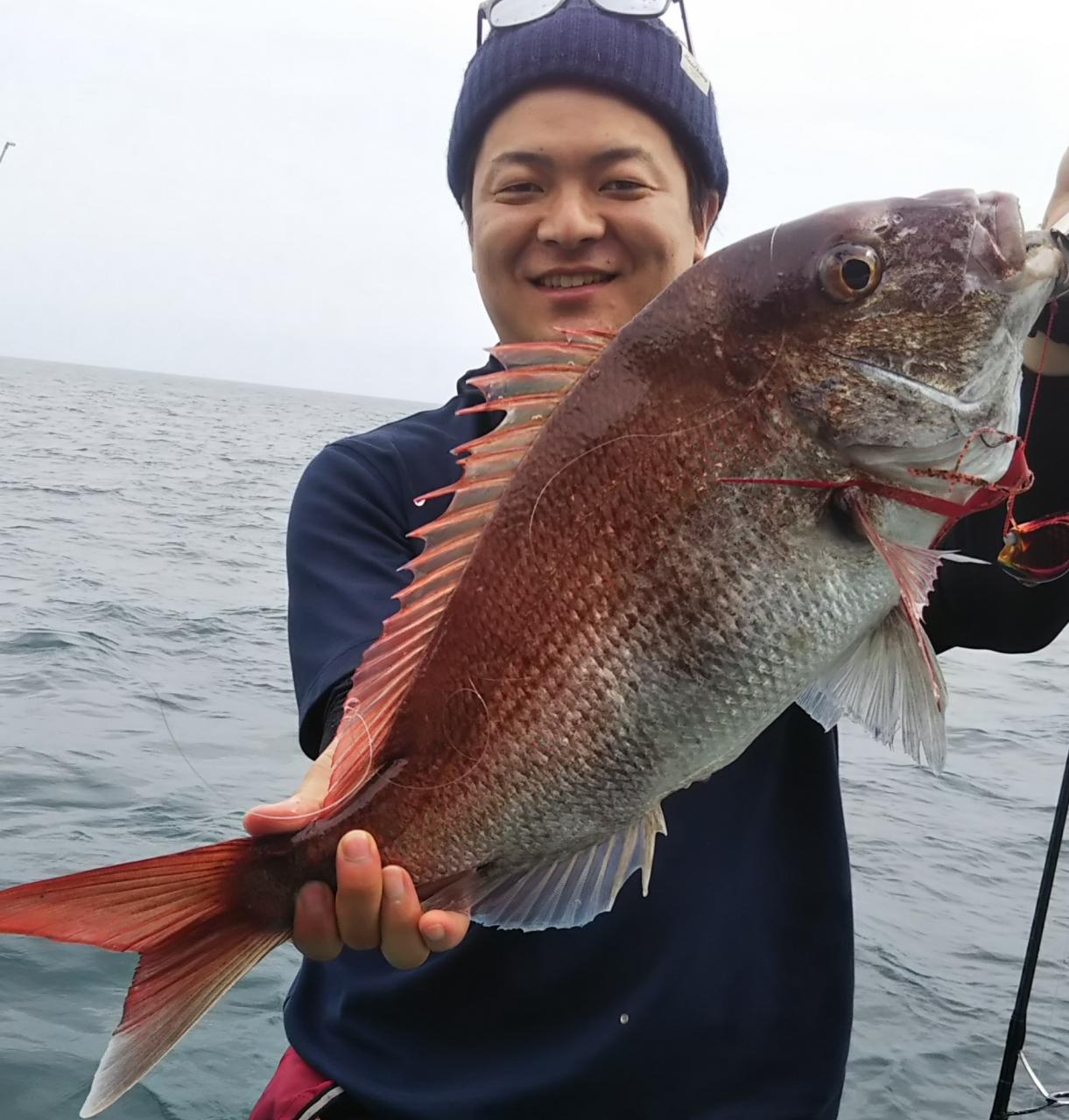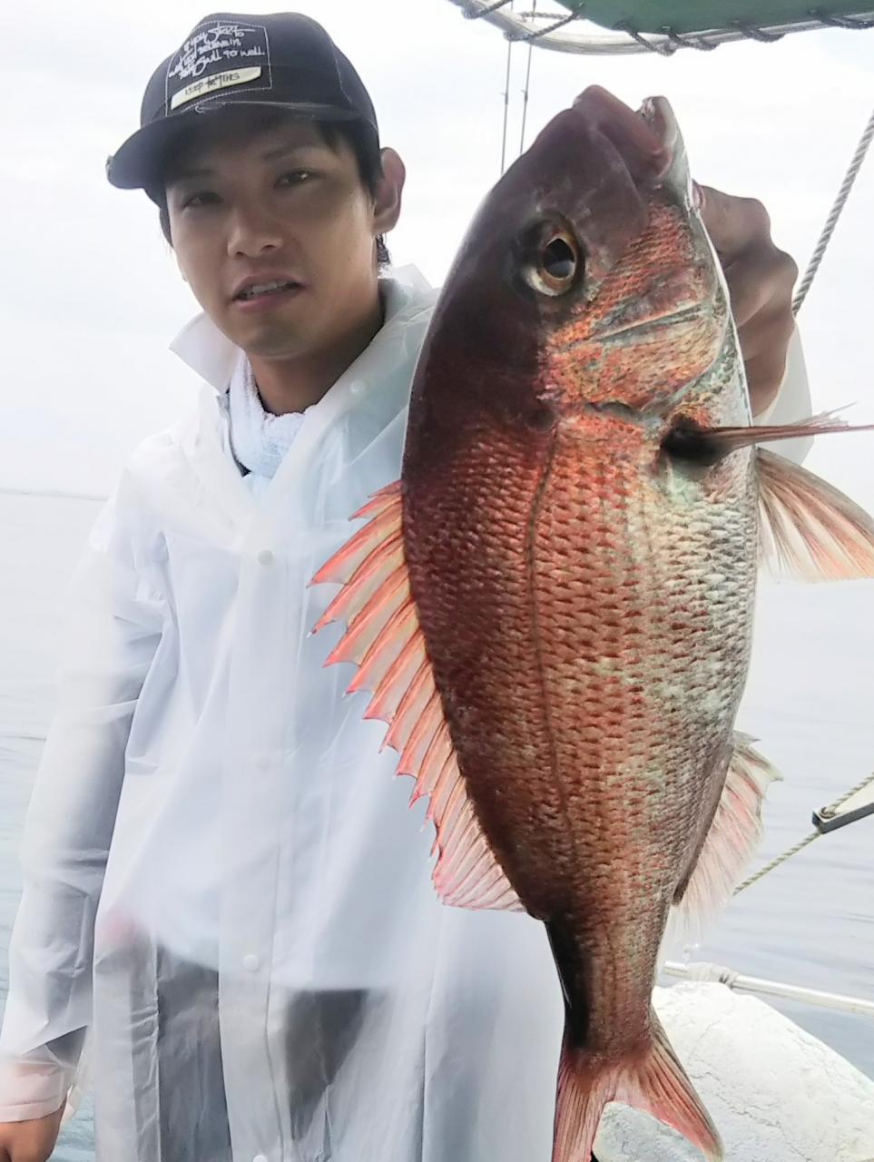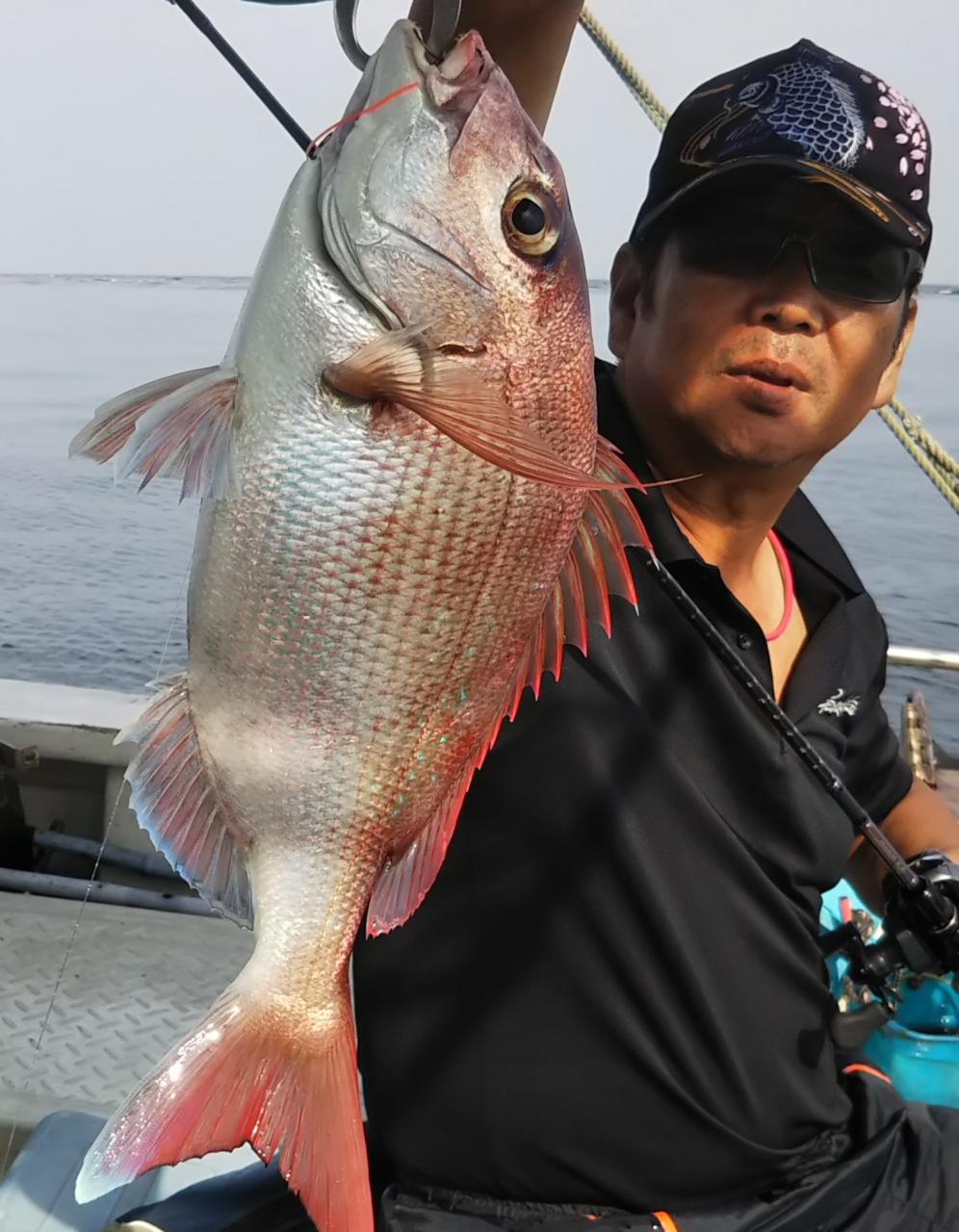 今日はフグも多いが、マダイが上がれば良型が多いよ!