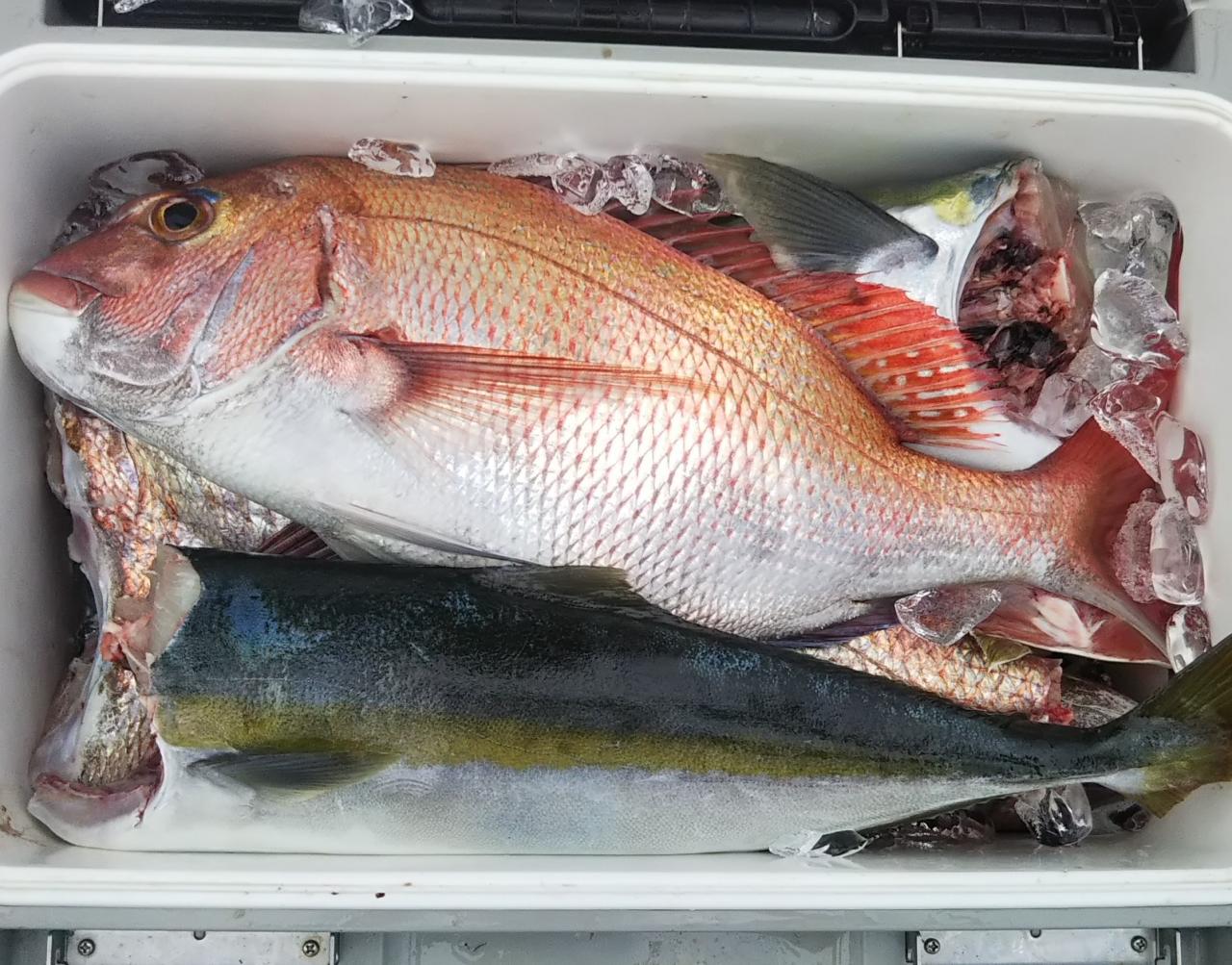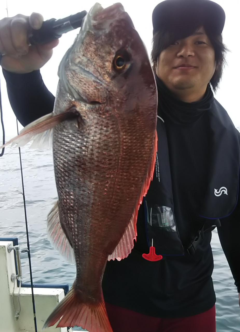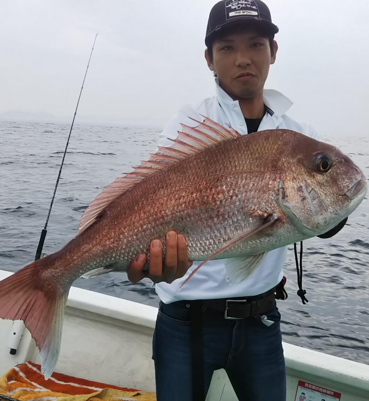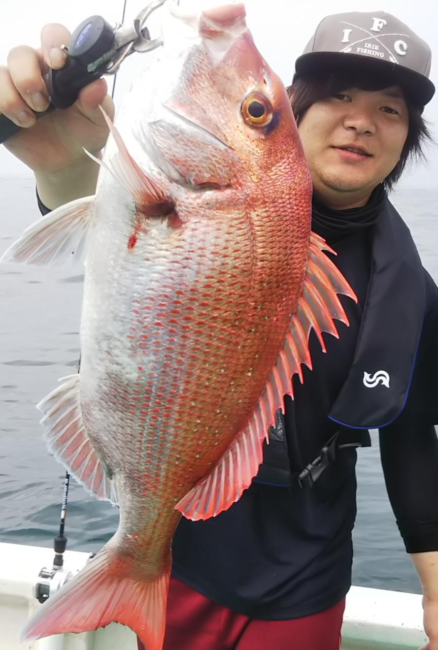 今日はフグも多いが、マダイが上がれば良型が多いよ!