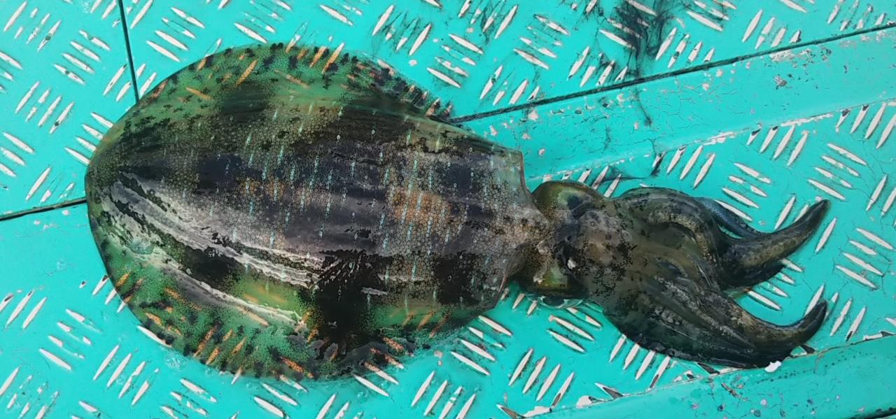 と、来ましたー、キロ級のアオリイカ~