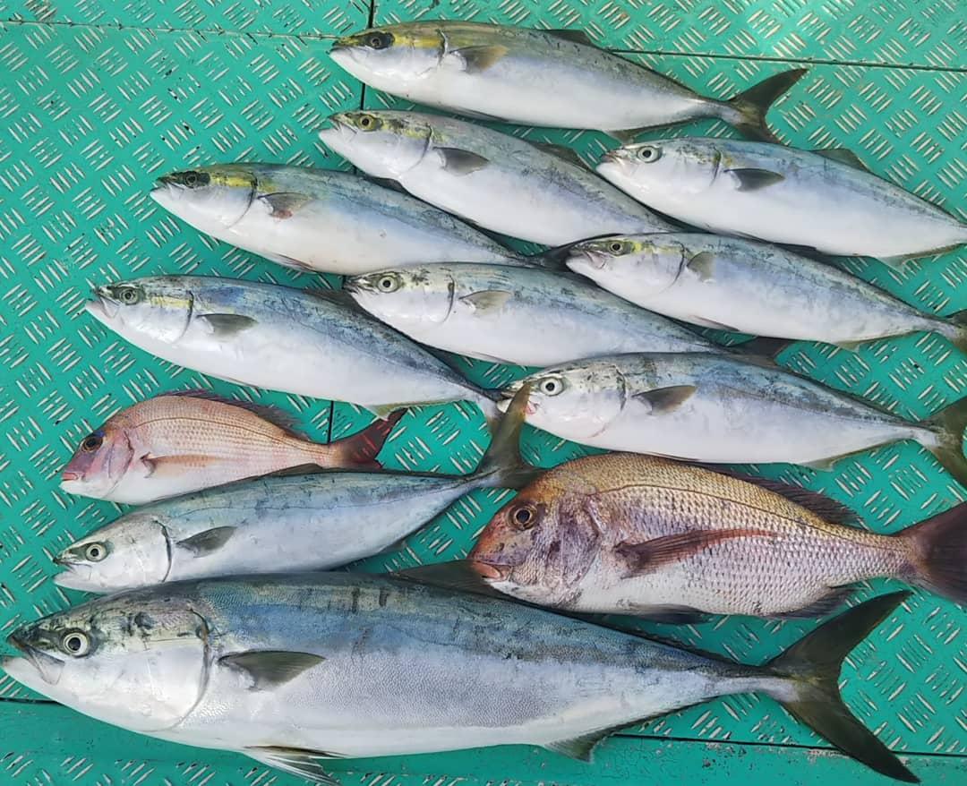 水温の急激な低下により食いが渋る中でしたが、ヤズの入れ食いに続いてマダイとブリもヒット~