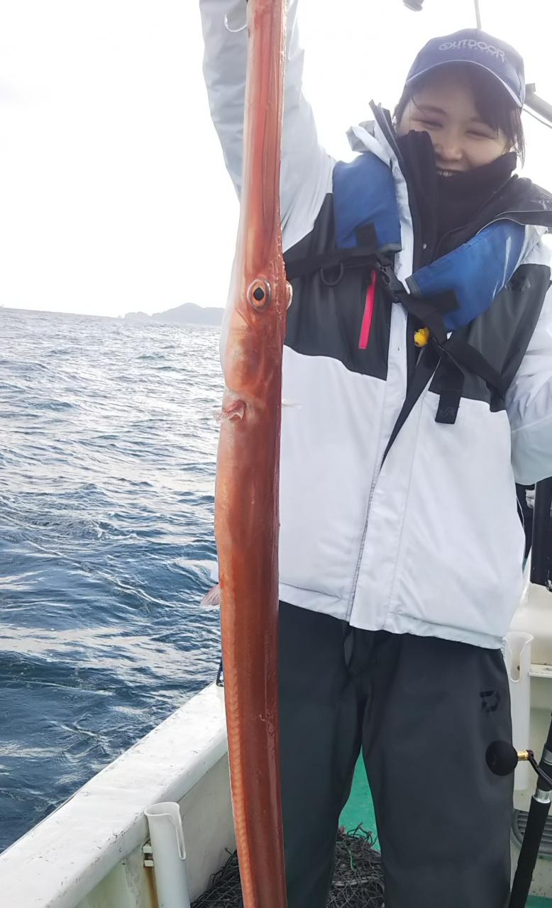 今までとは全然違う引き!何が掛かったんだろうと思ってたら、何とアカヤガラ!しかもデカイ、135センチありました~