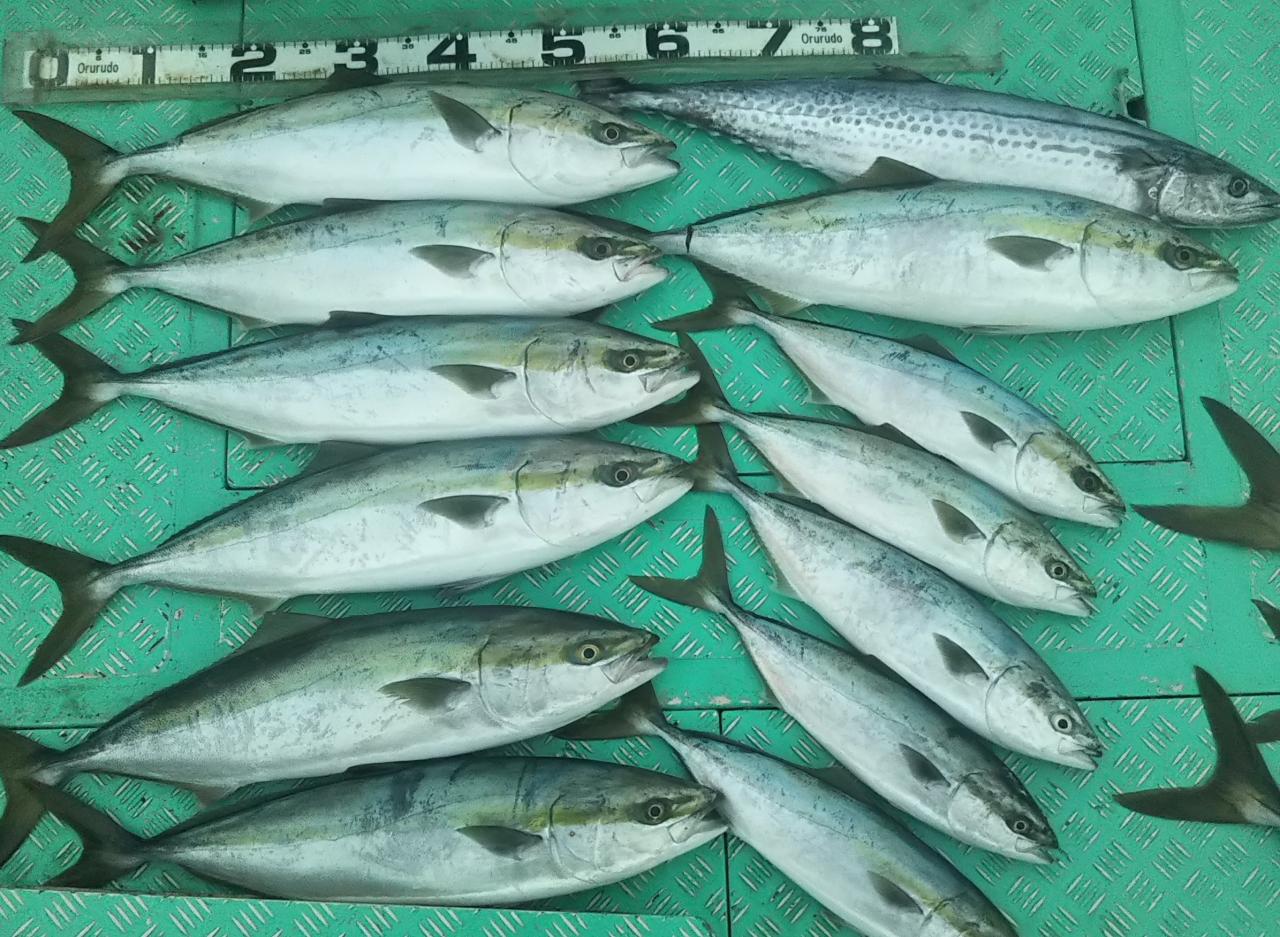 結果、ブリ90センチ8キロ、ハマチ70センチ~、ヤズ、サワラ