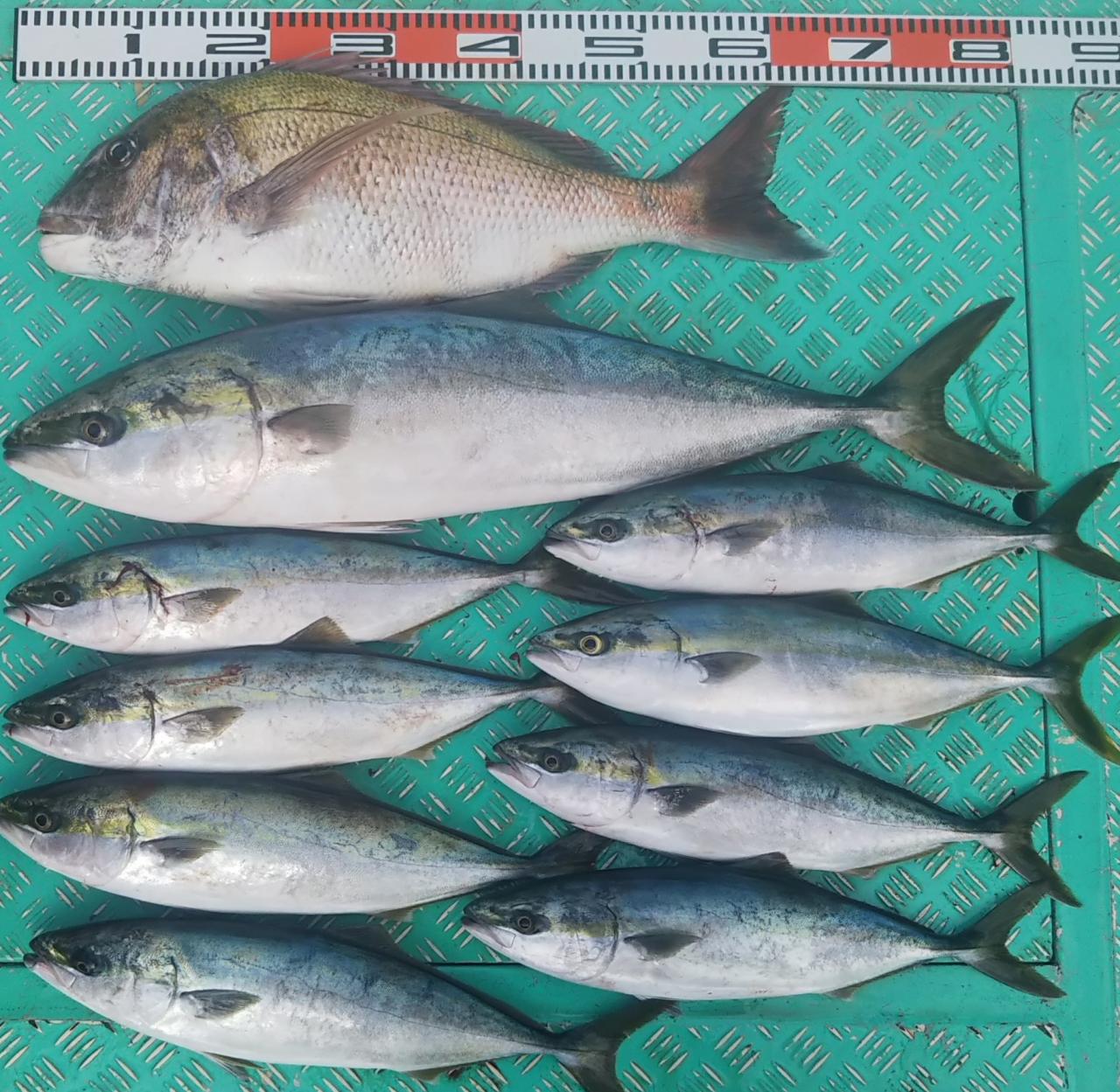 ブリ、マダイ、ハマチ、そしてヤズがどっちゃりと。