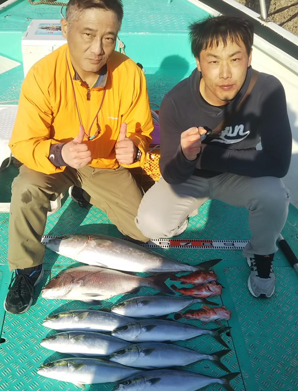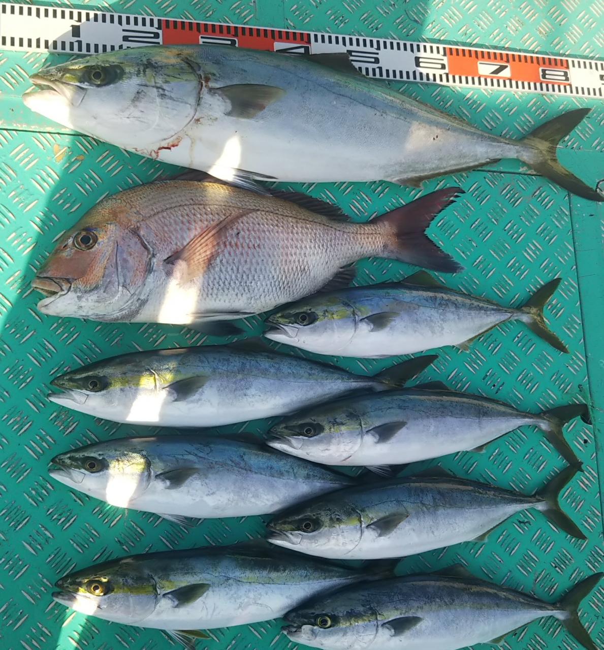 今日は60センチのマダイに82センチ6.5キロのブリも上がりました。