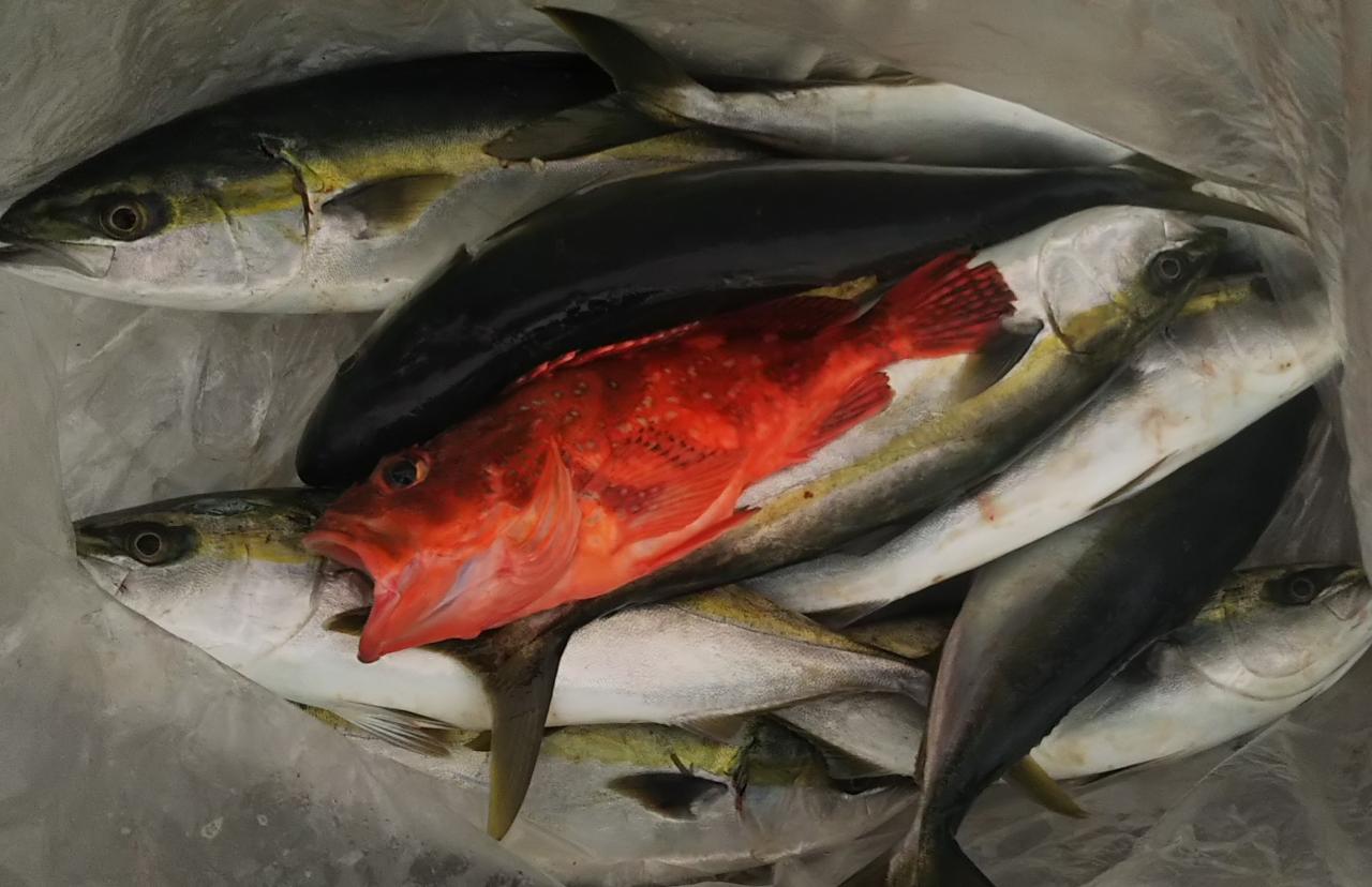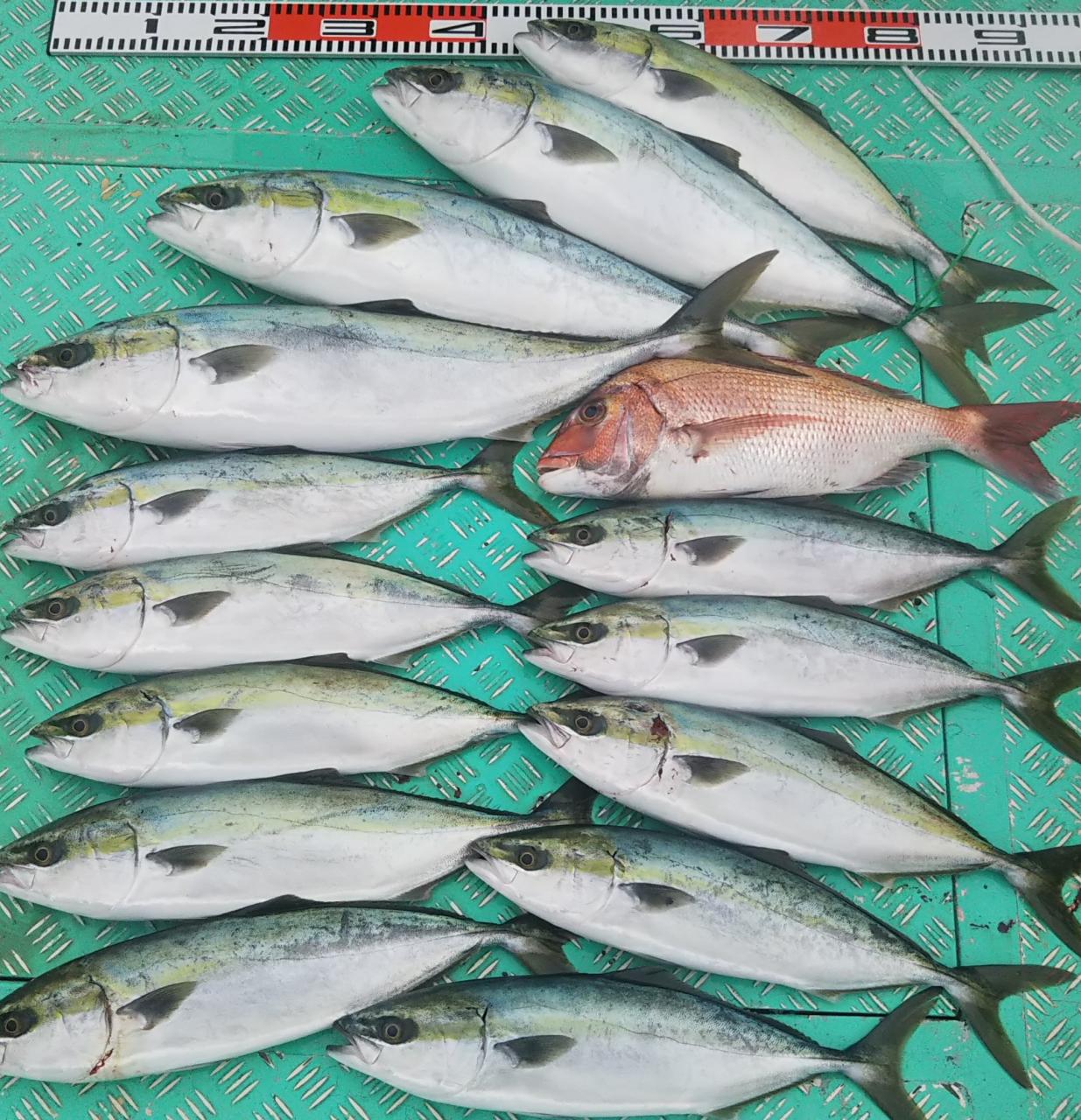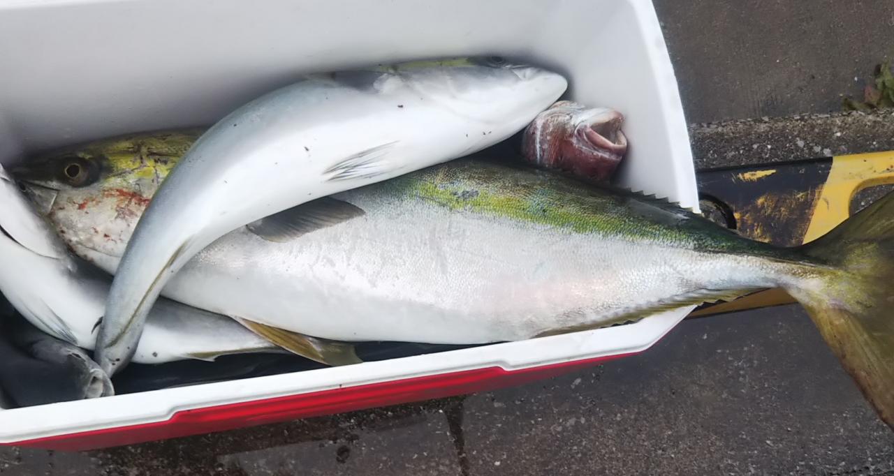 今日はブリ10キロを初めとしてハマチ70センチ、マダイ、ヤズ、デカホゴと、大漁でありました。
