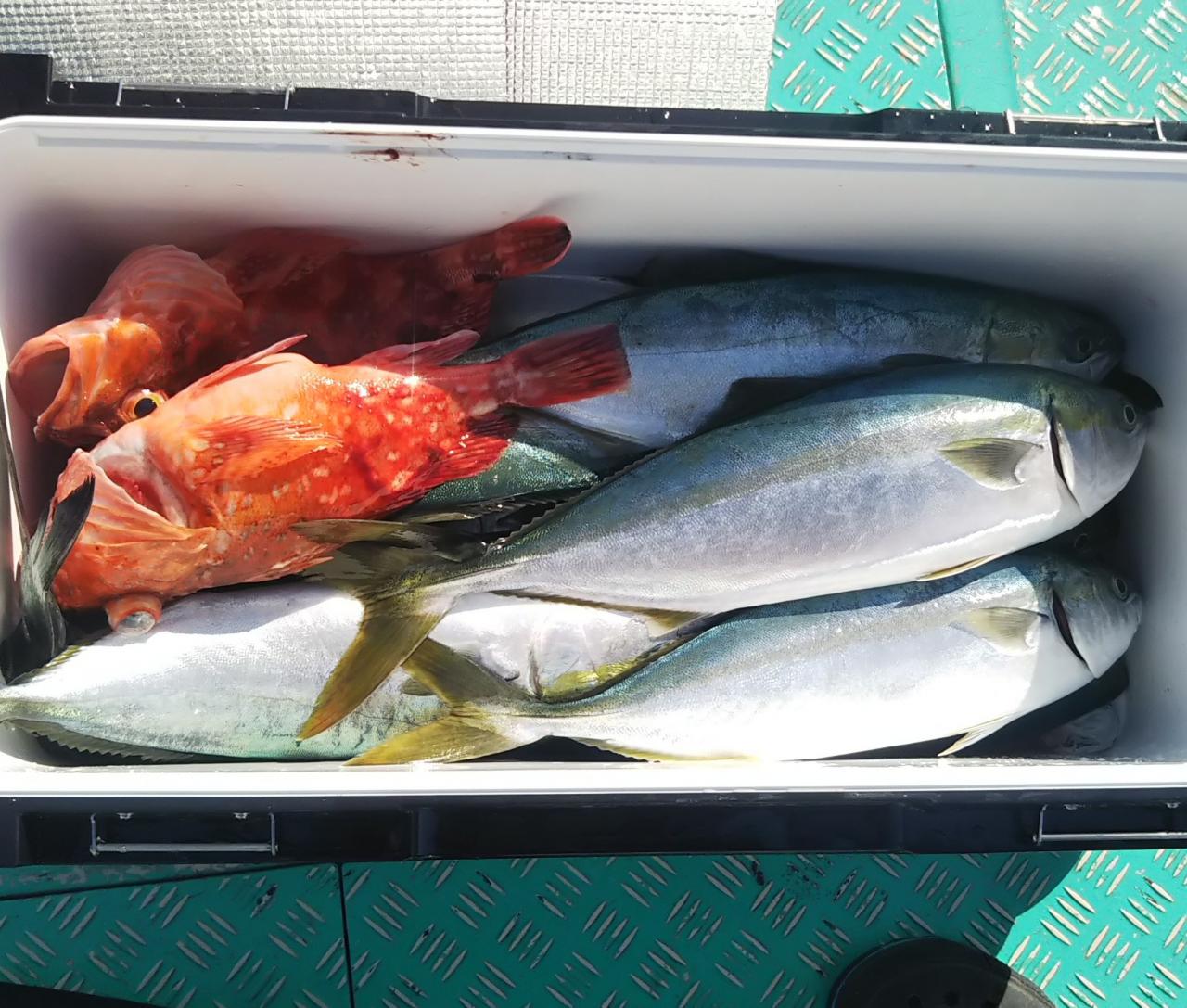 今日はなかなか潮が動かず。食いはシブシブでしたが、サワラ、ヤズ、ホゴでお土産はいっぱいでした~