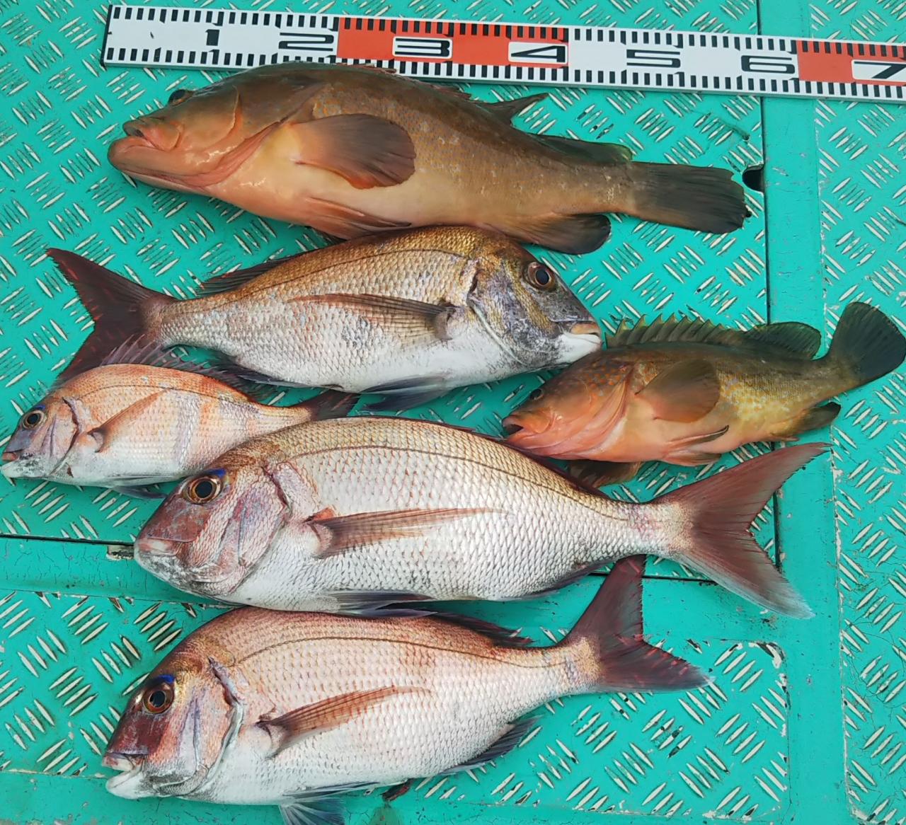 連日の雨の影響で水の色も良くなく、決して良いとは言えないコンディションでしたが、それでもマダイ連発!