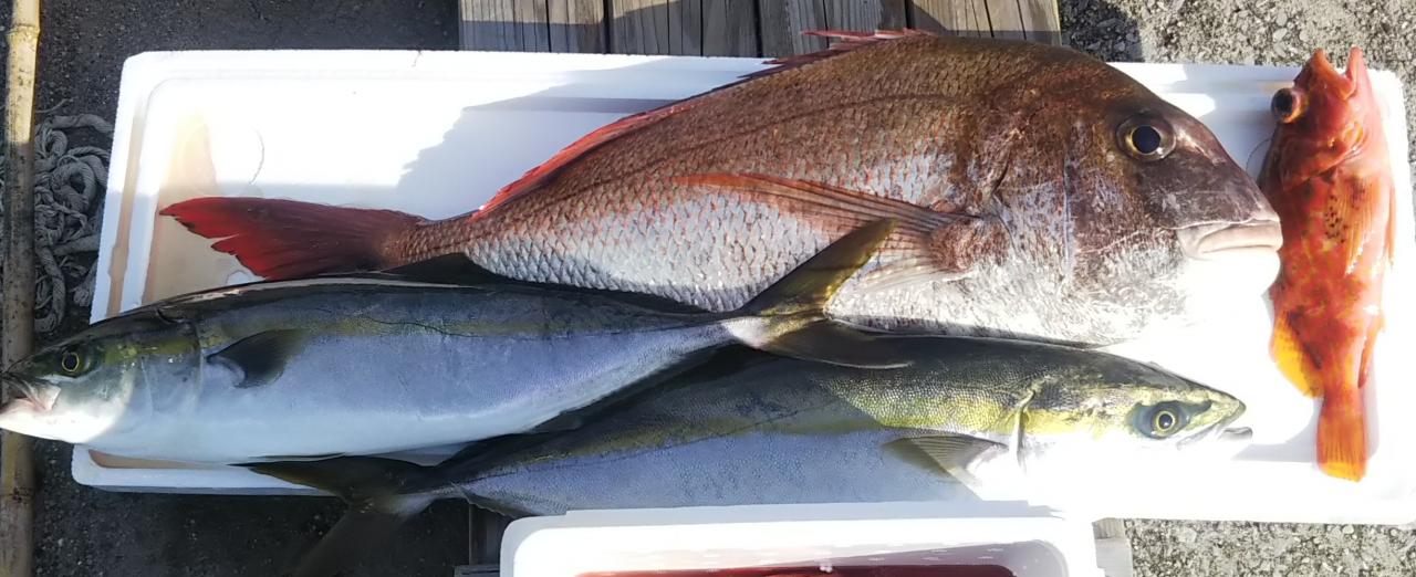 今日は潮がぶっ飛び。3.5ノットまで流れ非常に釣り辛い中、潮が緩んだ瞬間にモウチョットデブリ、大マダイ、大アコウ、ヤズ、ホゴ等ヒットしてくれました~