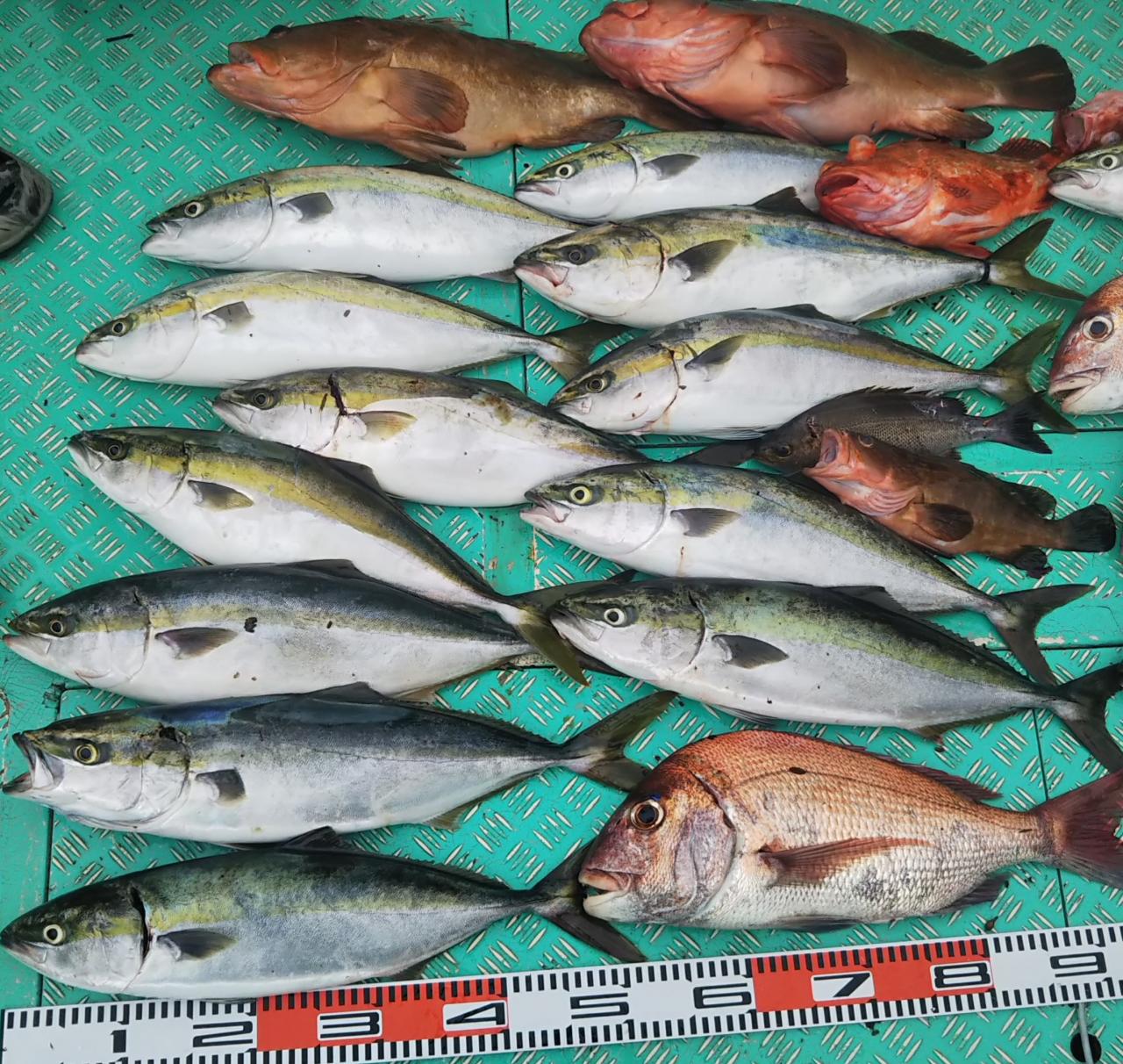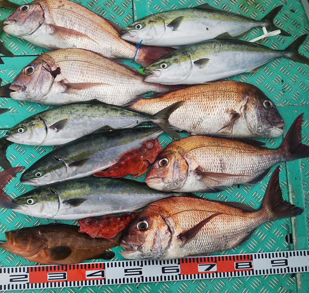 結果、今日はマダイ、アコウ、イサキ、ホゴ、モウチョットデワラサ、ヤズ、ホゴで大漁となりました~