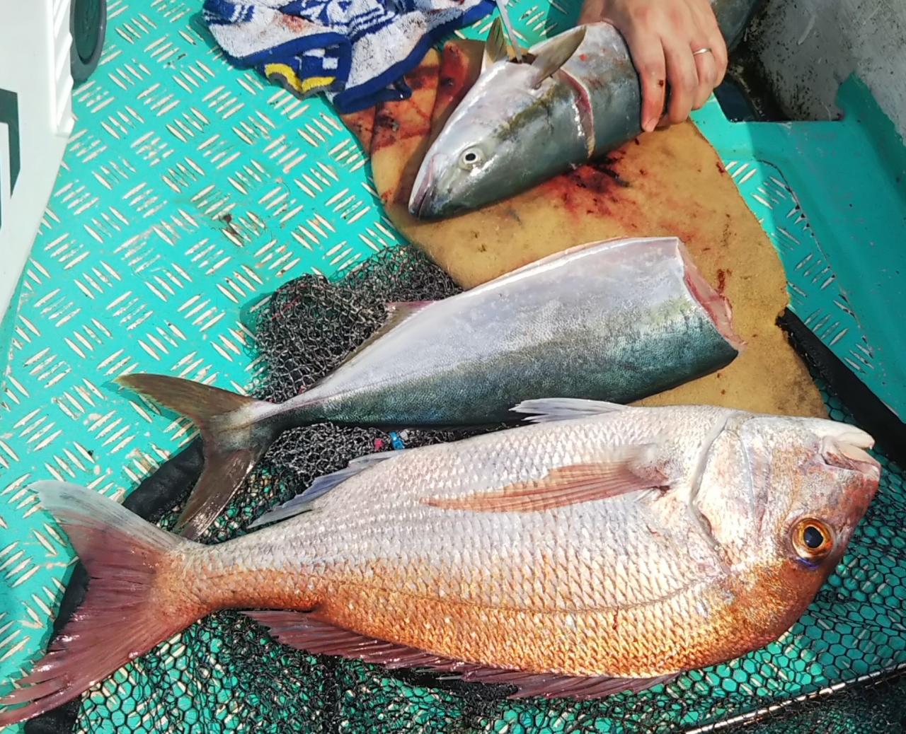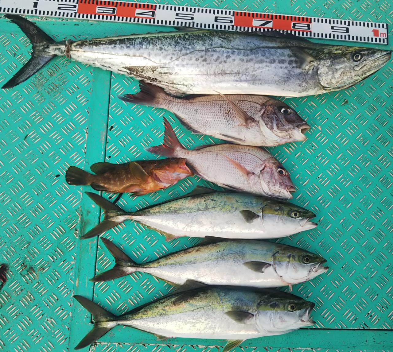 今日は久々の大サワラが出たり、マダイ、ワラサ、ヤズ、アコウ、ホゴでまずまずの釣果に。
