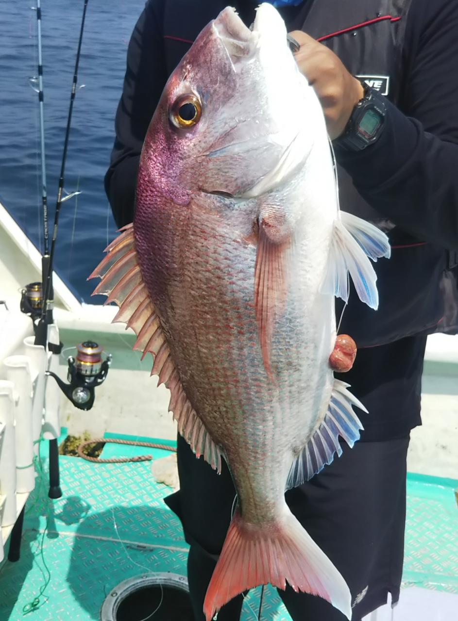 しかし二枚潮の境目をうまく釣り、ロクマルマダイをキャッチ~!