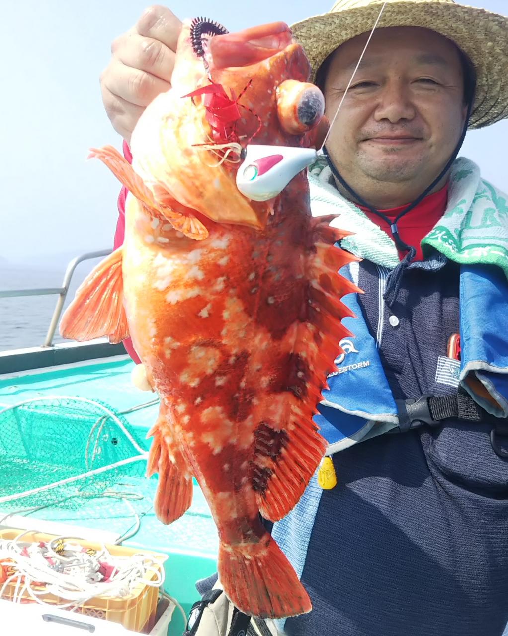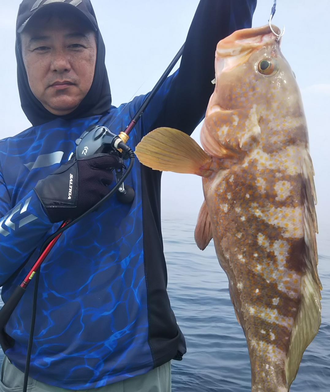 アオモノでイケスがいっぱいになって、マダイ、底物を狙っているとダイゴロウ君がヒットしました~