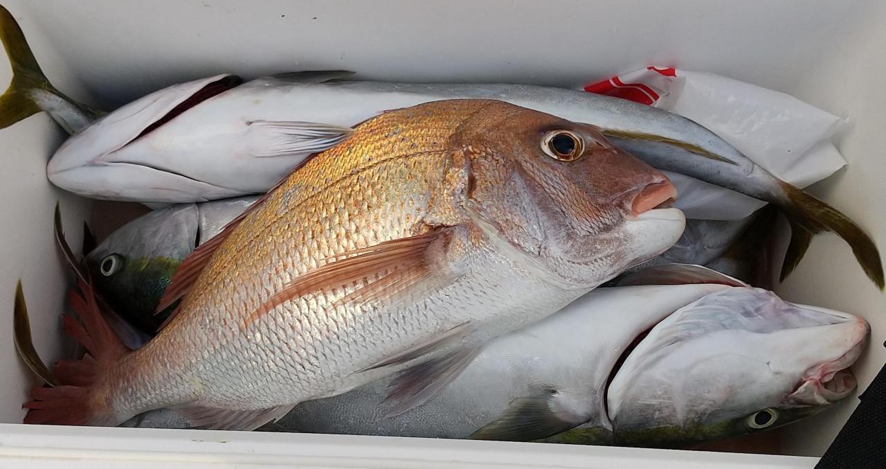 魚の食いも今日はシブ目、でしたが、それでもアオモノ、マダイ、関○バ、トラフグと皆さんに釣果有りました。