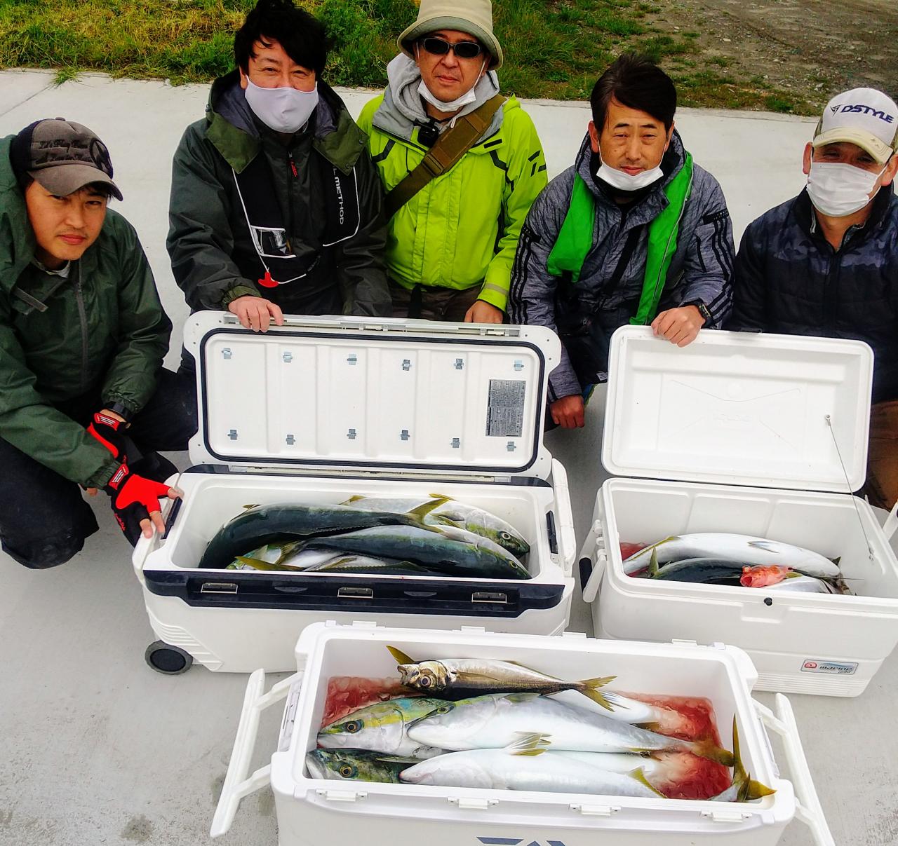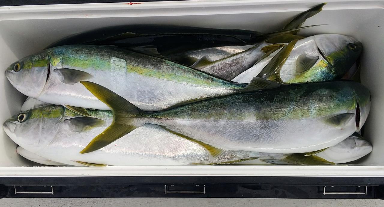 朝イチは潮動かず今日は厳しいか、とヤキモキしてたら、ハマチがヒット!
