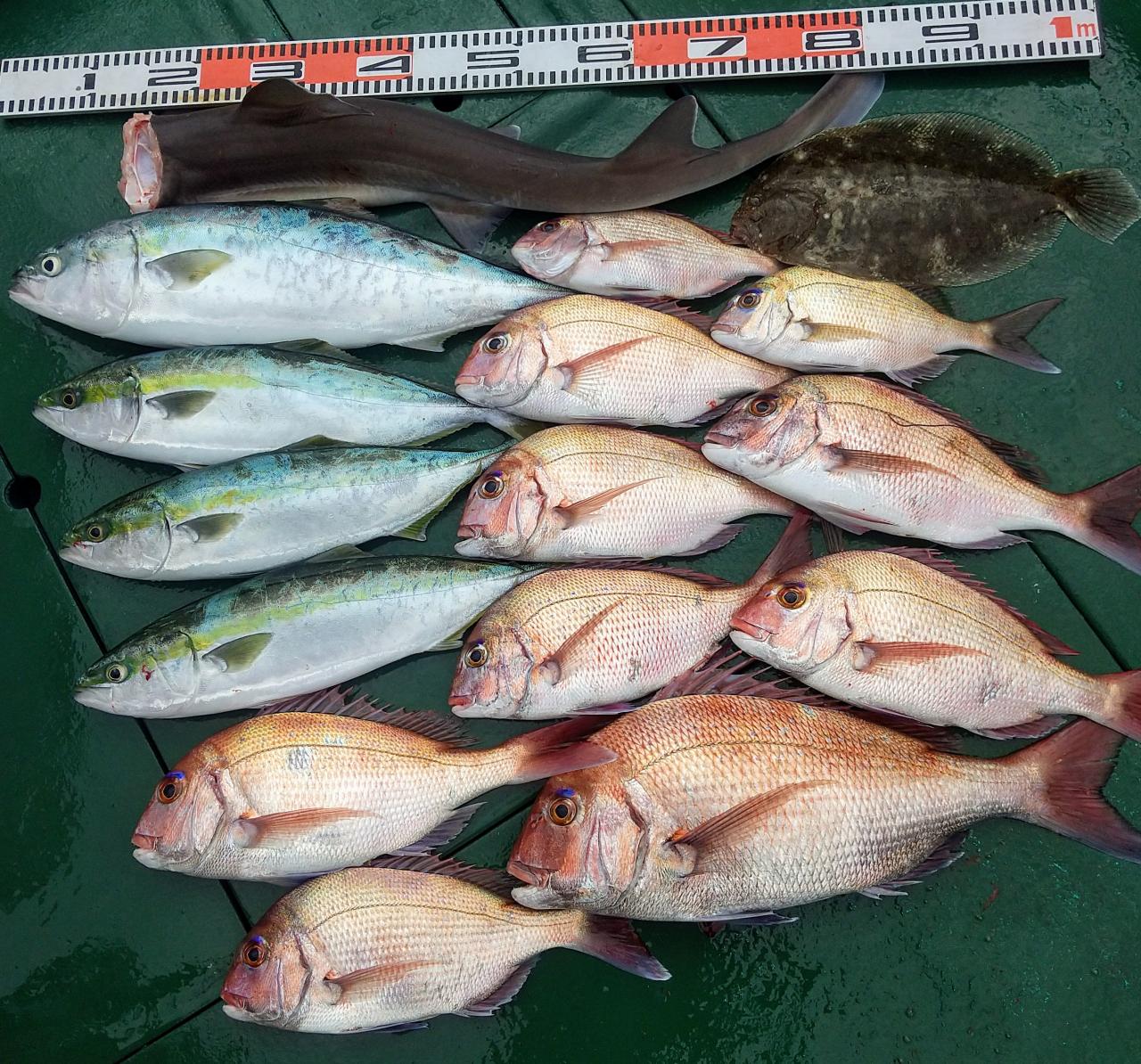 結果、マダイ、ハマチ、ヤズ、ヒラメ、そしてサメ君wでお土産いっぱいでした。