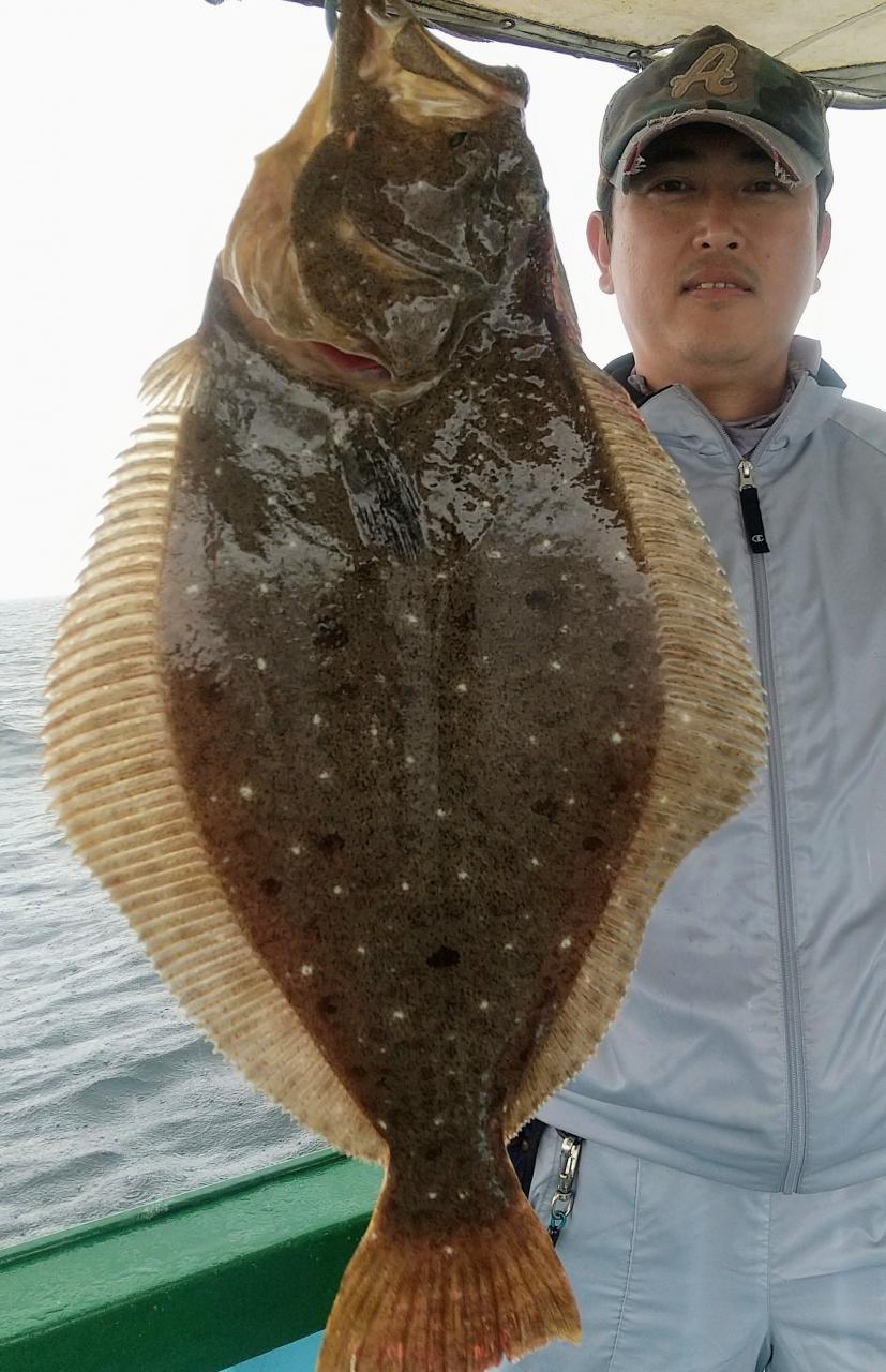 風波雨に阻まれて行きたい所に行けなかったものの、まず朝からヒラメ一発!そして終わりがけにヒラメ二発!!