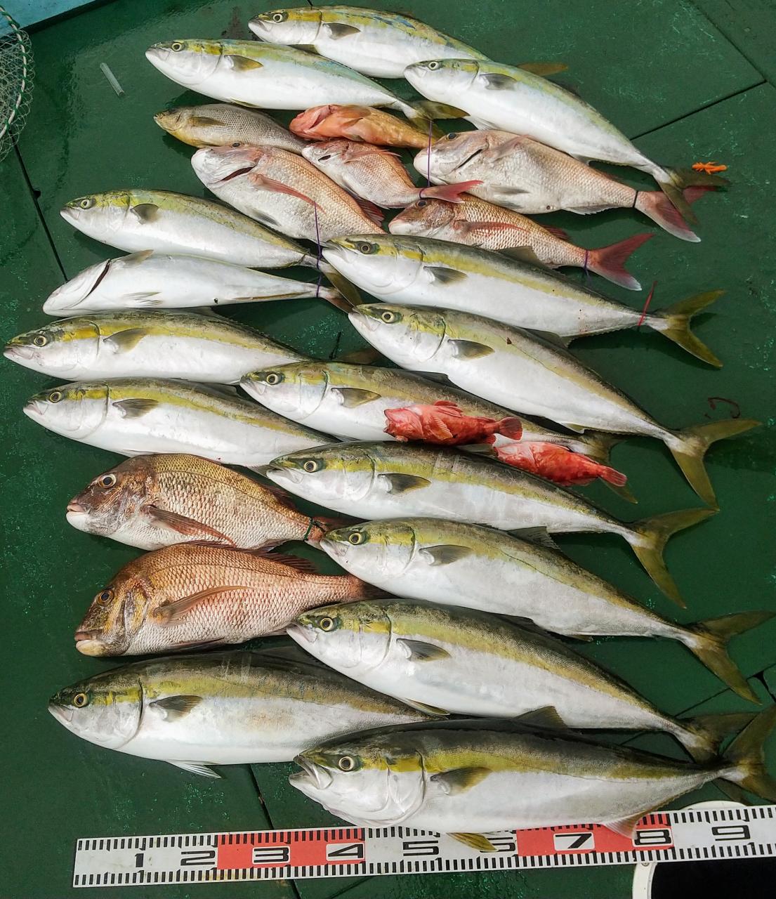結果、今日は朝の上げ潮の残り潮で、イサキ、マダイ、ハマチが良く釣れました。