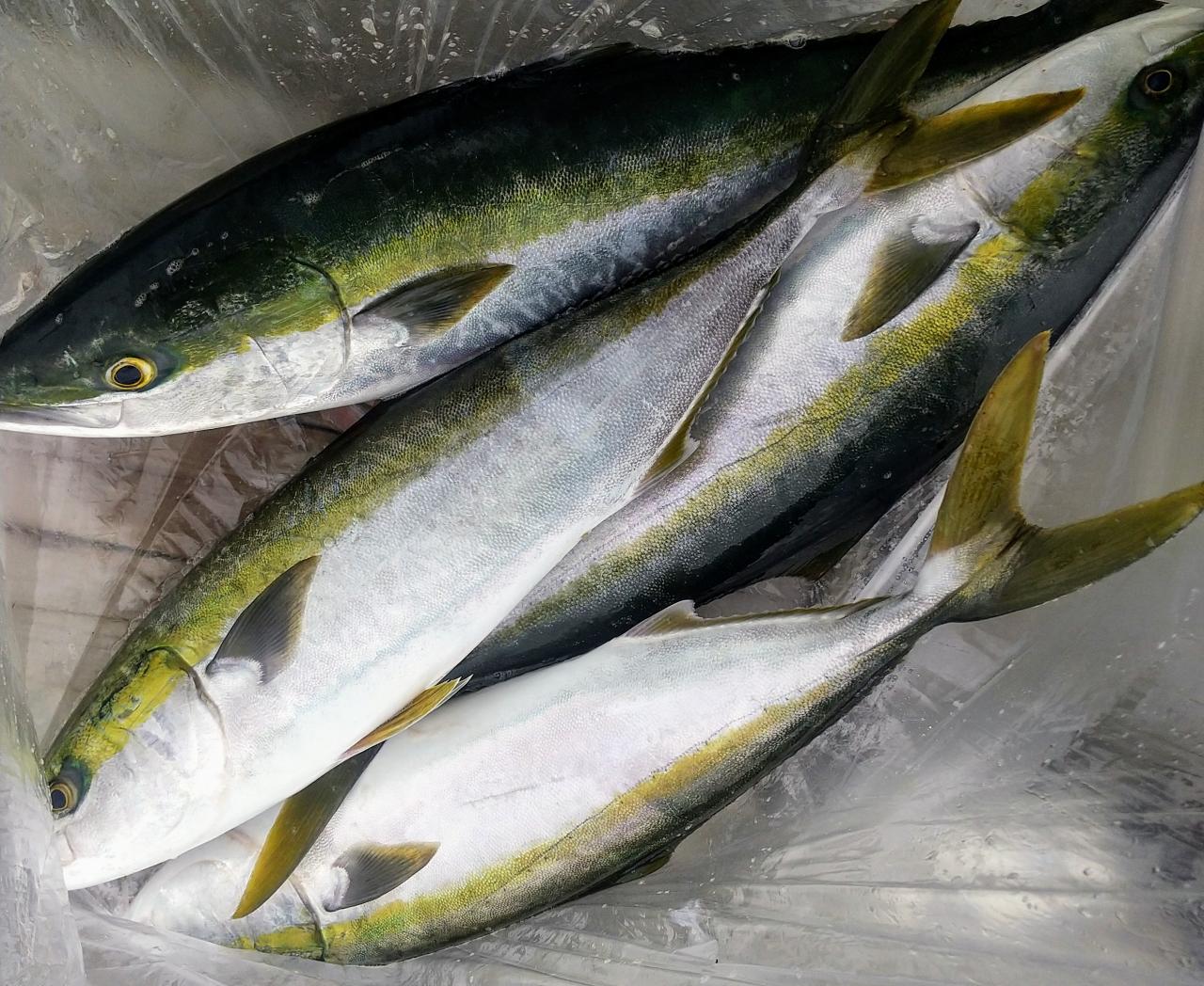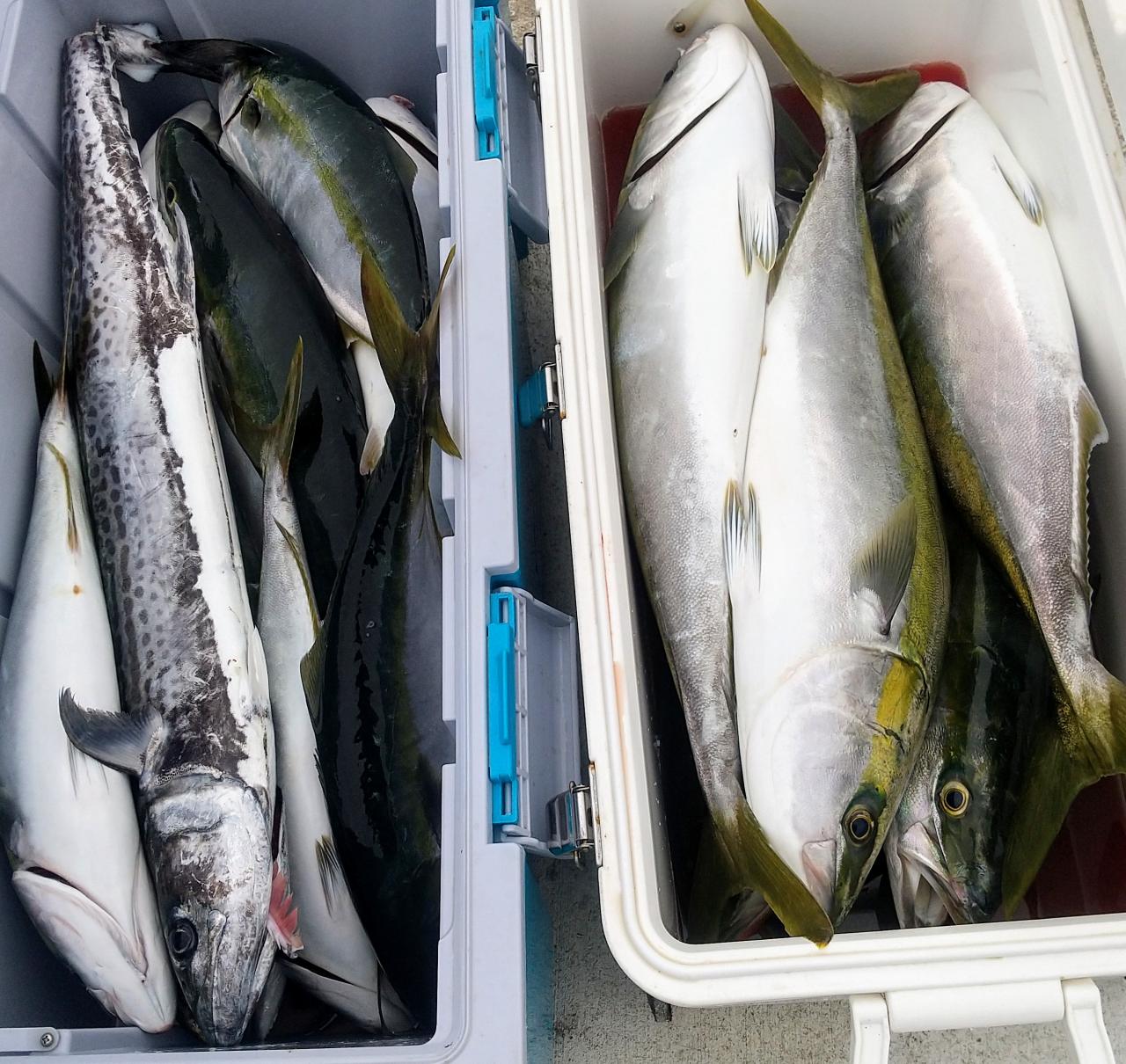 朝イチのサワラから始まって、70オーバーのまん丸ハマチでイケスもクーラーも満杯に。