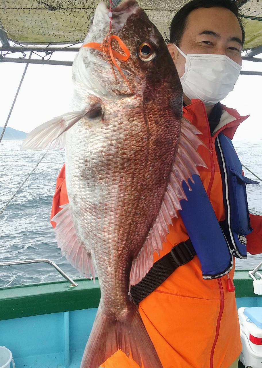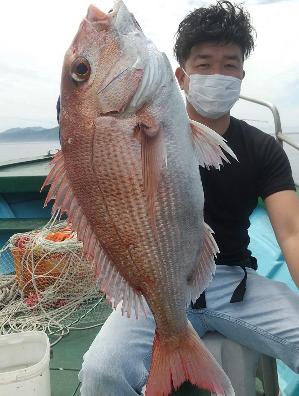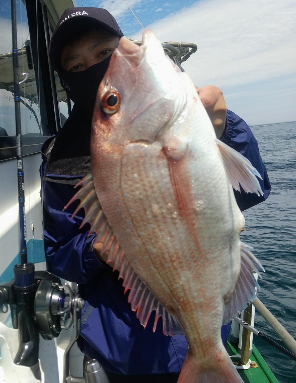 強烈な引きを楽しんで、潮が緩んでからはマダイ57センチ、大アコウ、イサキ、カンダイ、ヨカホゴと、全員ヒットしてヨカ釣果で有りました〜