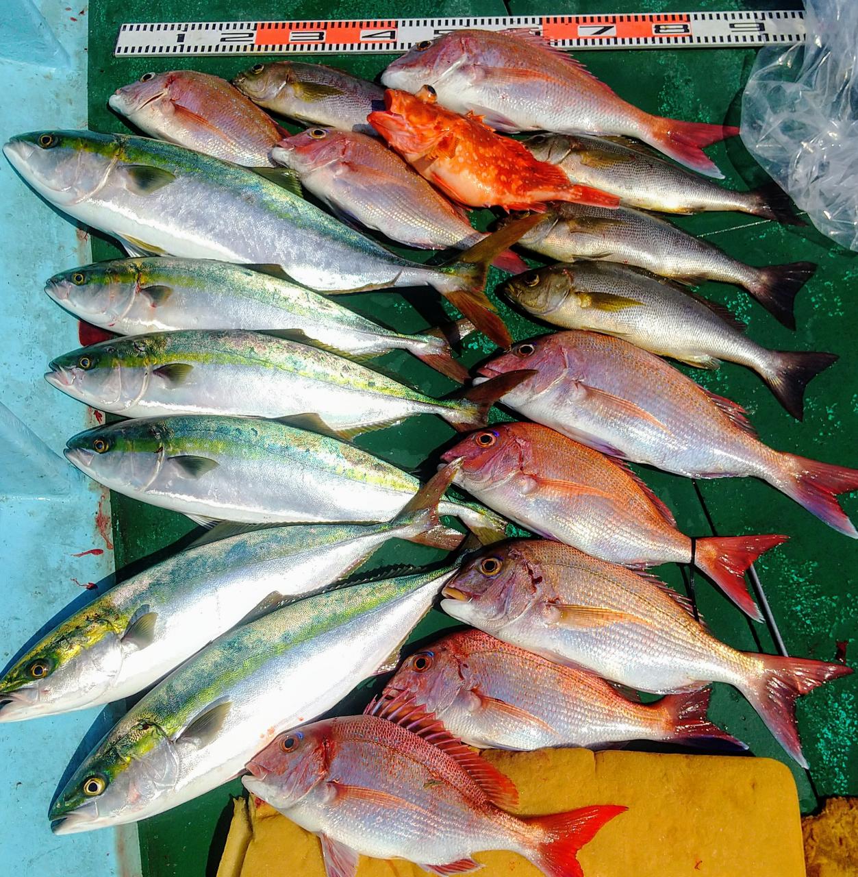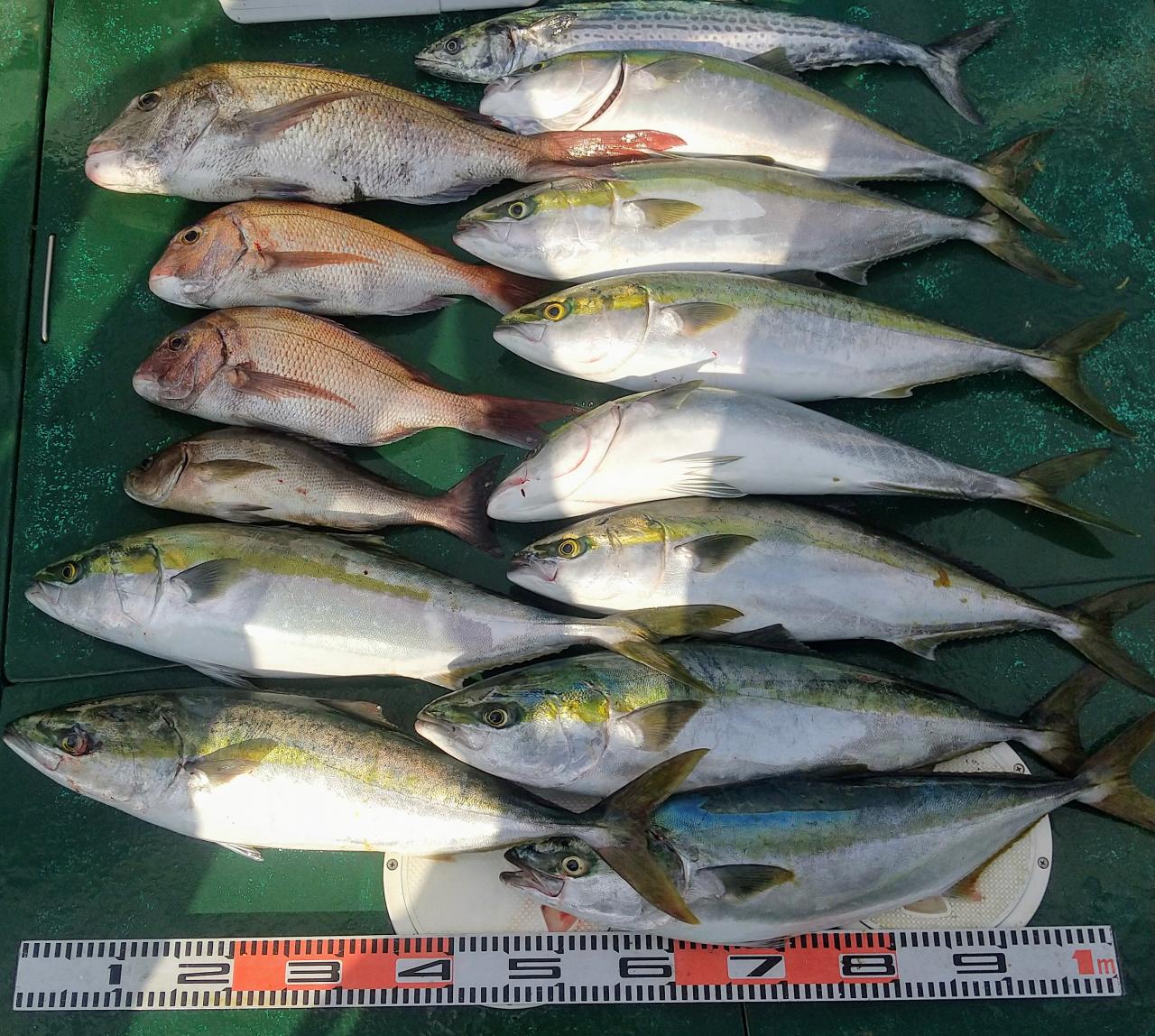 そして潮が変わってから75センチを筆頭にマダイ、イサキ、ハマチ