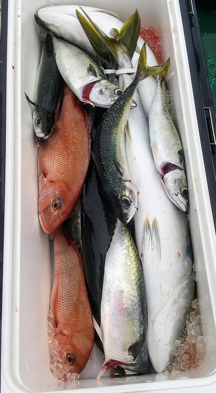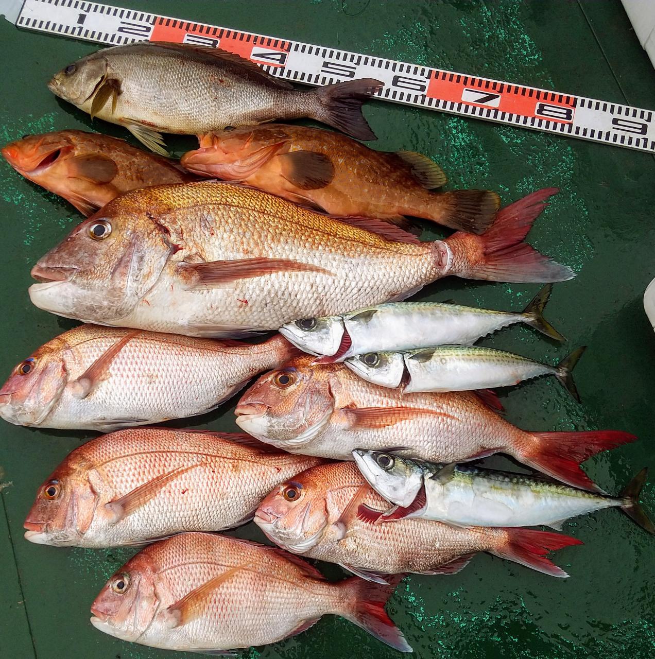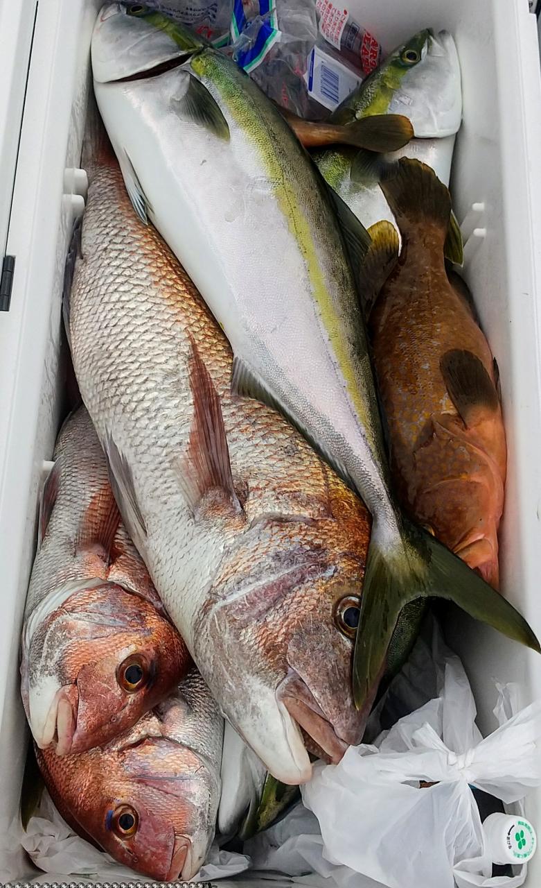 マダイ、ホトンドブリ、サバ、イサキ、アコウ、ホゴ、グーフーと魚種も彩り良く。