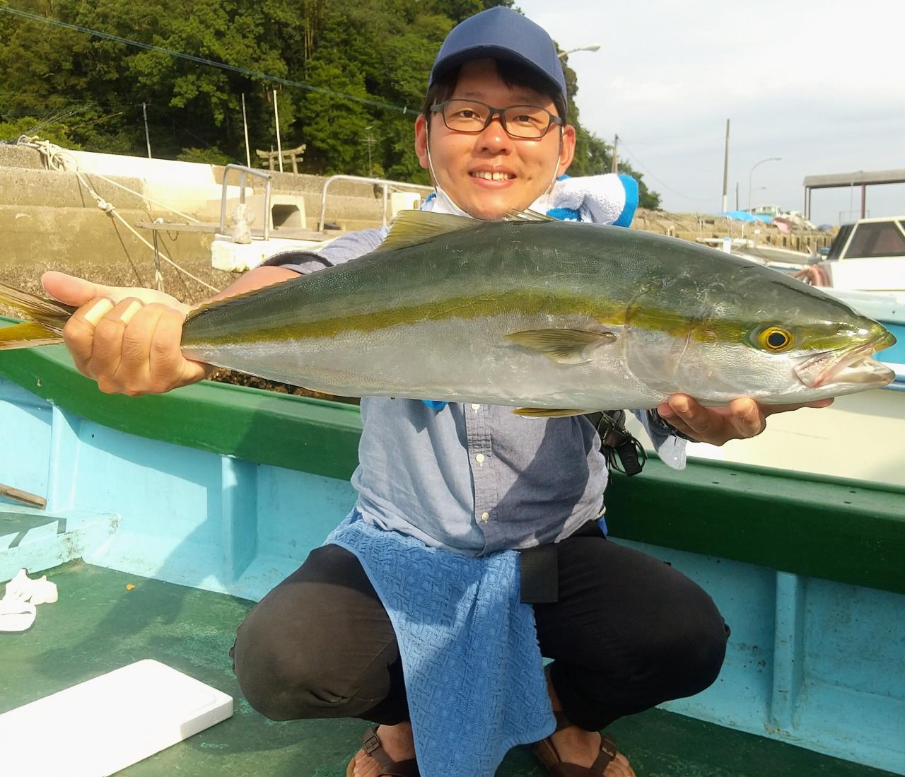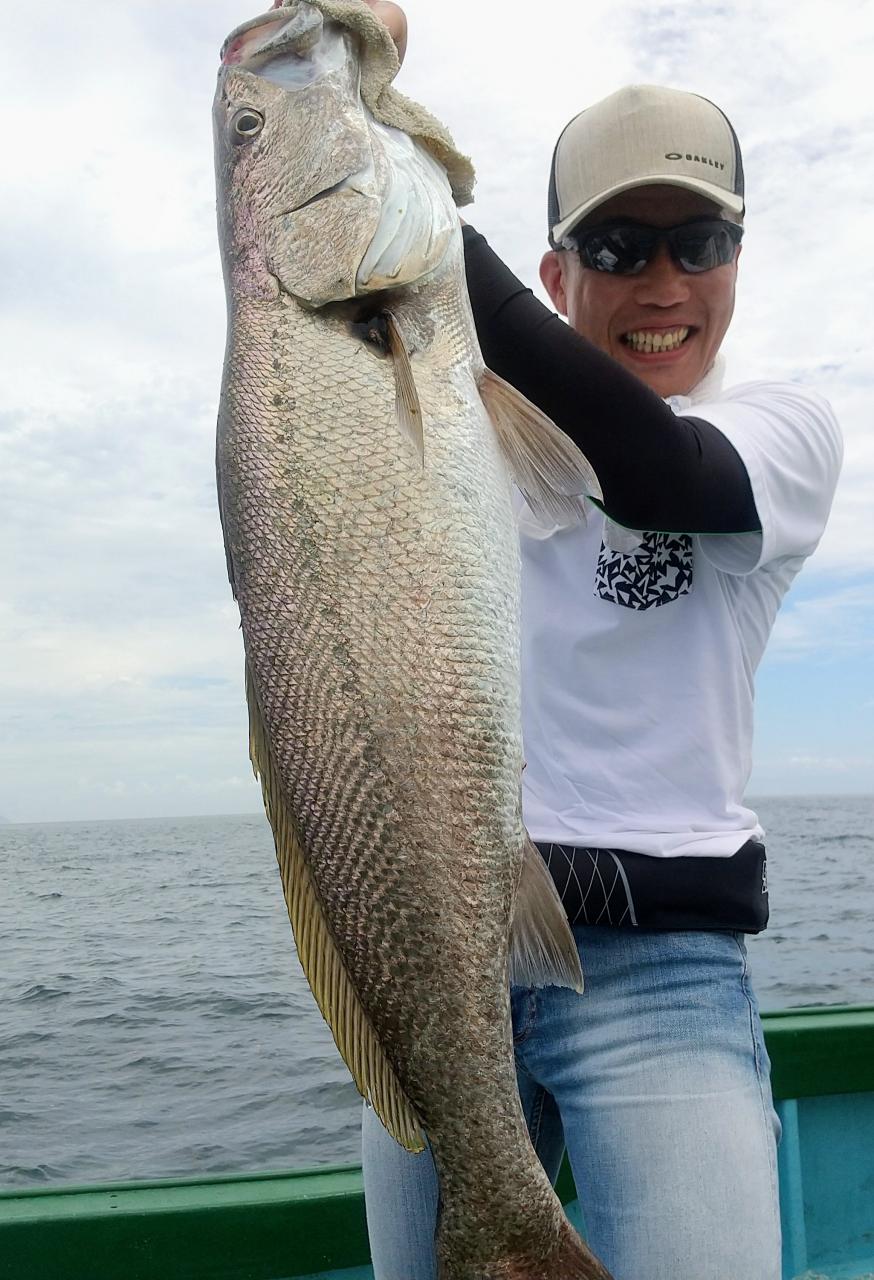 台風の後ということで海の状況が心配でしたが、沖の方は魚の食いもよろしく、マダイ、モウチョットデブリ、オオニベ、大サバ、ホゴ、グーフーで皆さんクーラー満杯に。ウネリも無く、いい1日でしたね〜