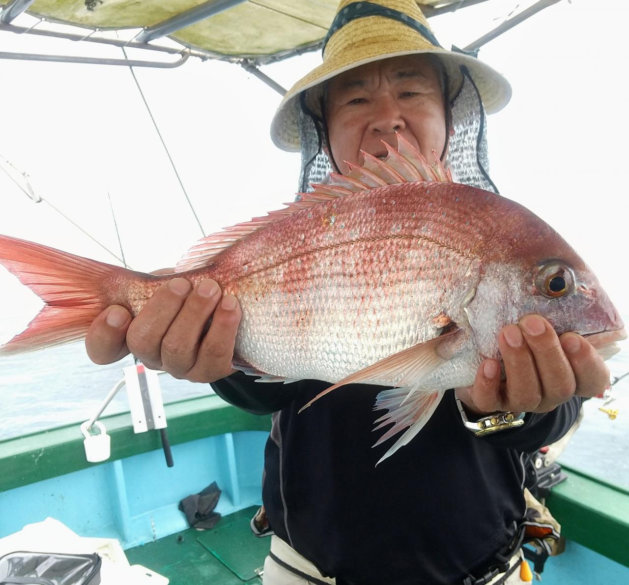 一流し目からロクマルを筆頭に次々とマダイがヒット!
