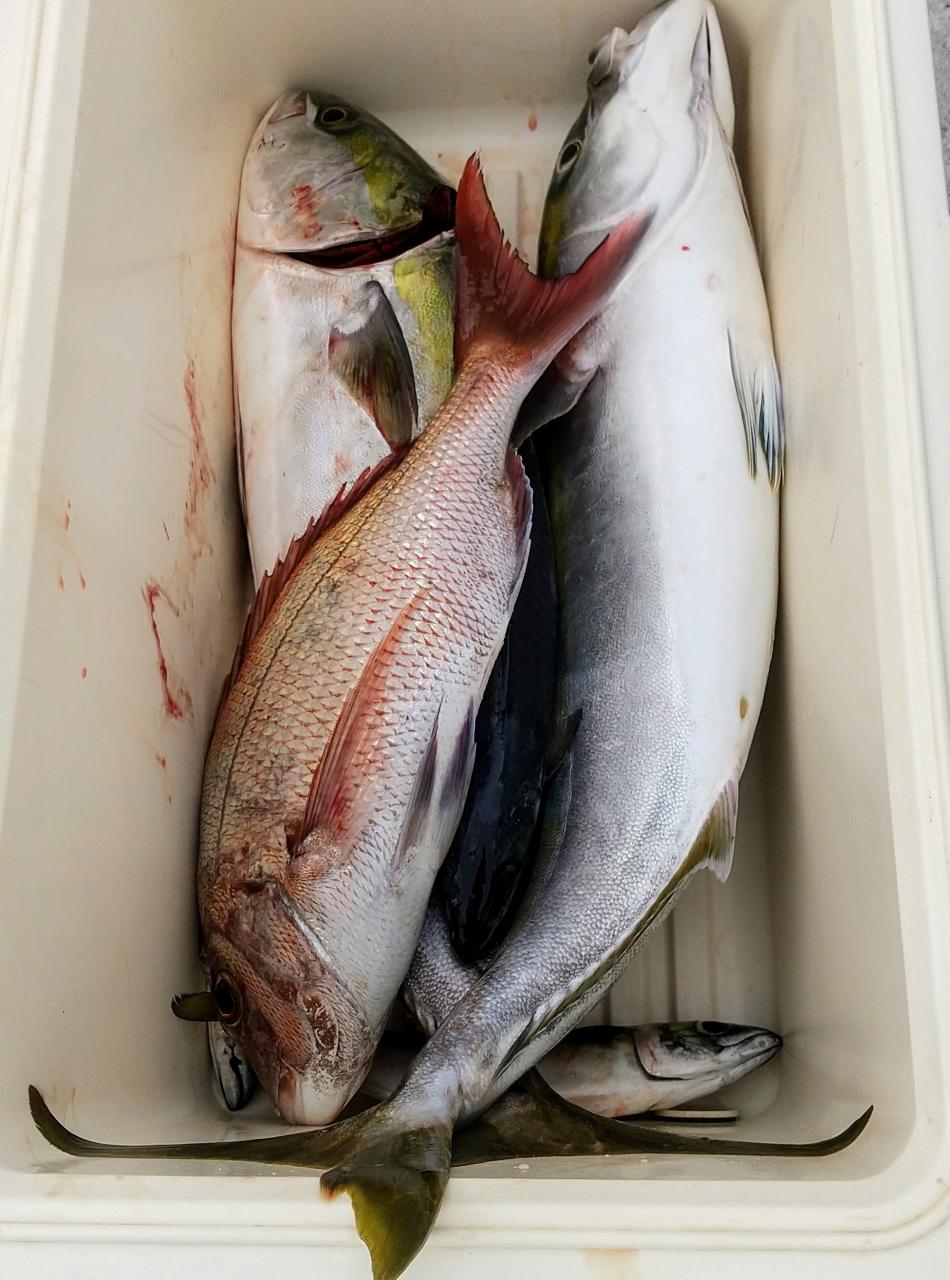 雨の影響は有るものの釣果には恵まれ、潮が走って来てからはホトンドブリが次々とヒット!