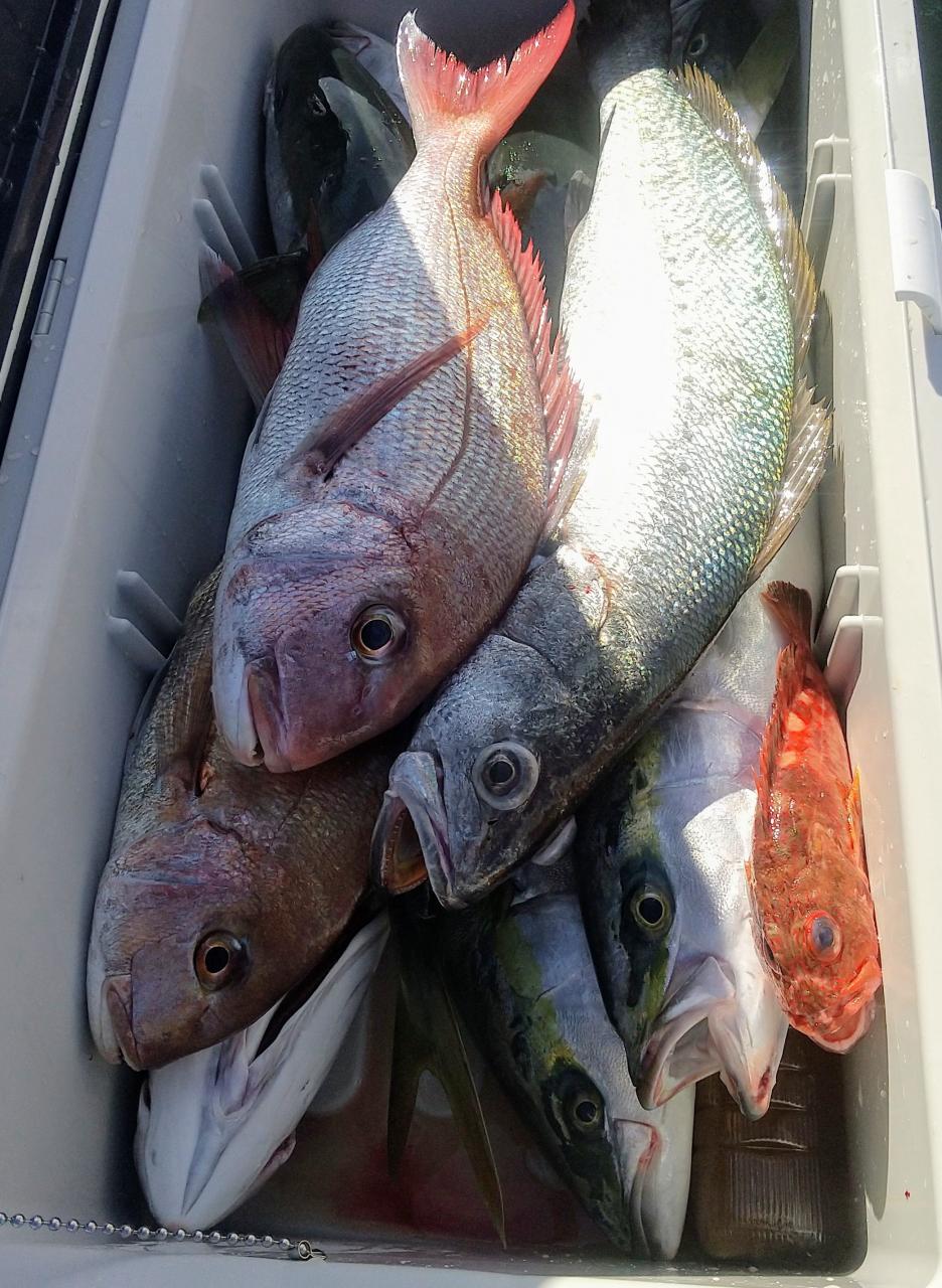 風にアオられ釣り辛い中でしたが、それでもマダイ、オオニベ、モウホトンドブリ、ホゴでお土産はバッチリと。
