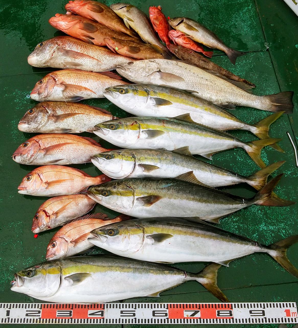結果、今日は最近海上に吹き荒れていた南東の爆風も無く、釣りやすい状況で、モウチョットデブリ、マダイ、イサキ、サバ、ホゴ、グーフーで皆さんクーラーいっぱいでした。