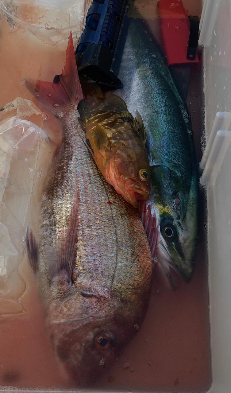 でしたが、サワラ93センチ、マダイ60センチ、ブリ、ハマチ多数、そしてラストにアコウ、の結果は皆さんお見事!