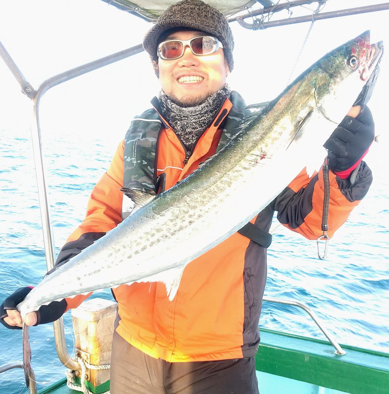 さて一発目、強い引きで上って来たのはサワラ93センチ〜!