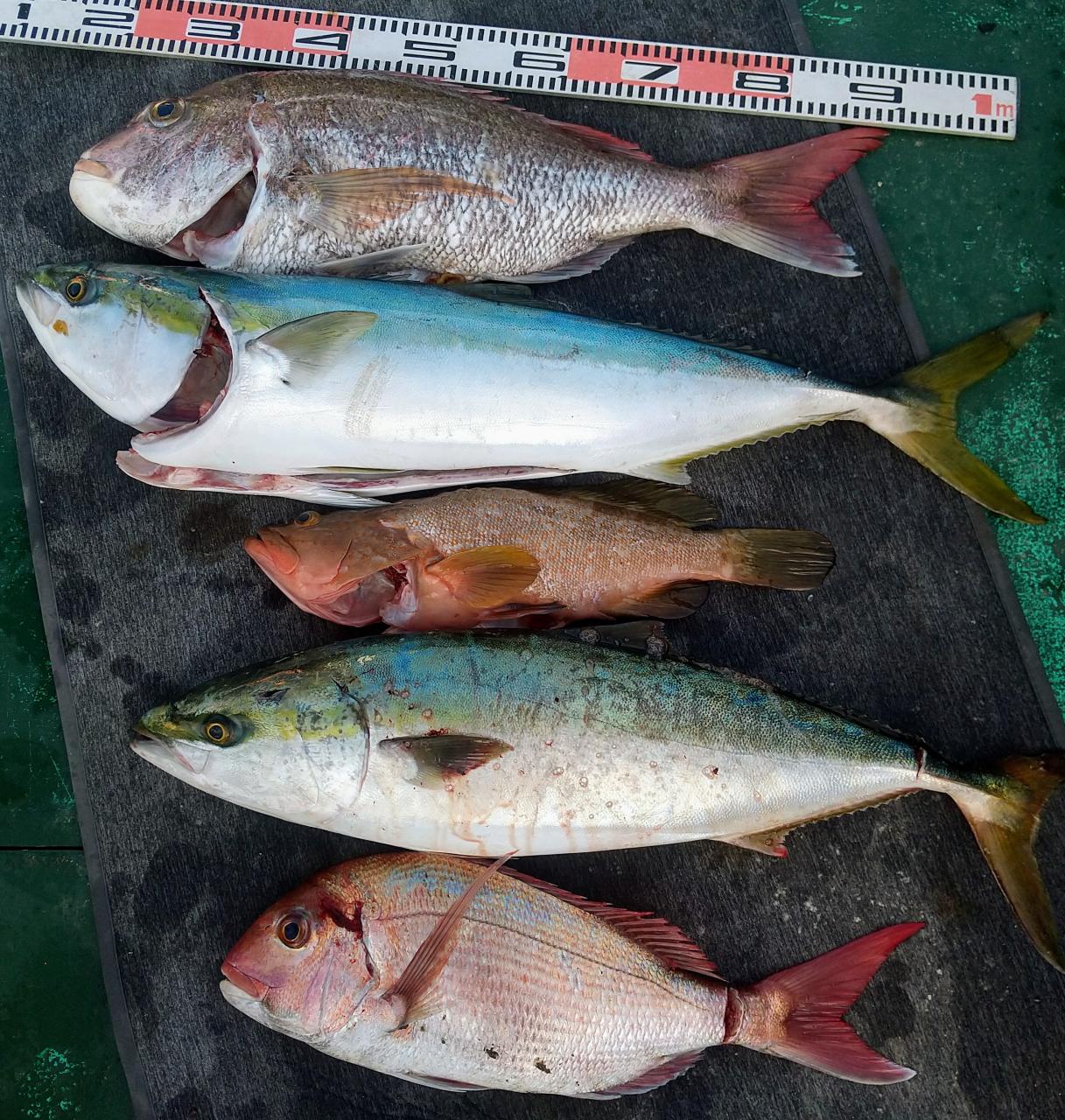 結果、マダイ80センチ、70センチ、60センチ、45センチ、