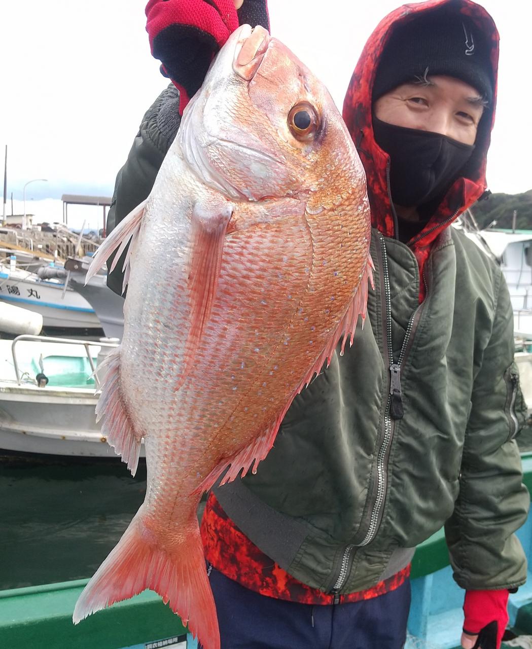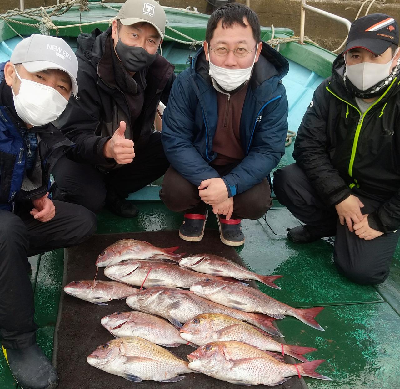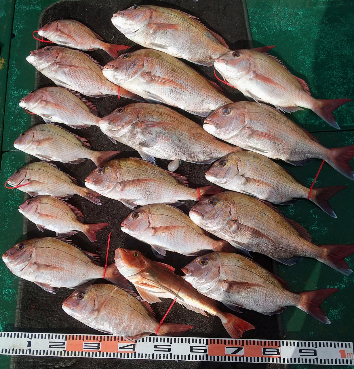 釣果はほぼ100パーマダイ。最大65センチで型良しぞろい。