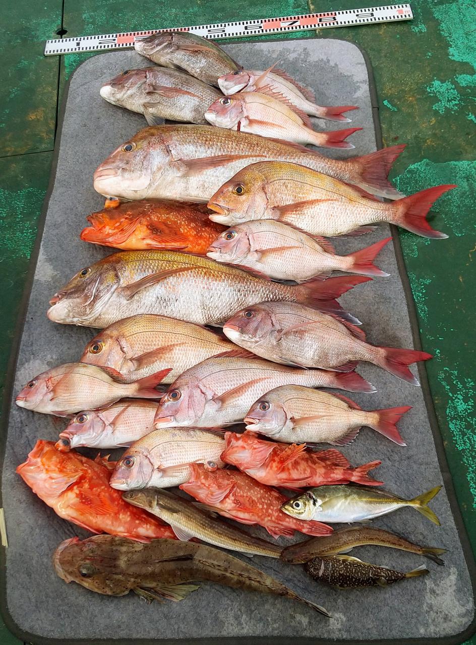 ブリからチュウボウ、アコウ、ホゴとお土産も確保。